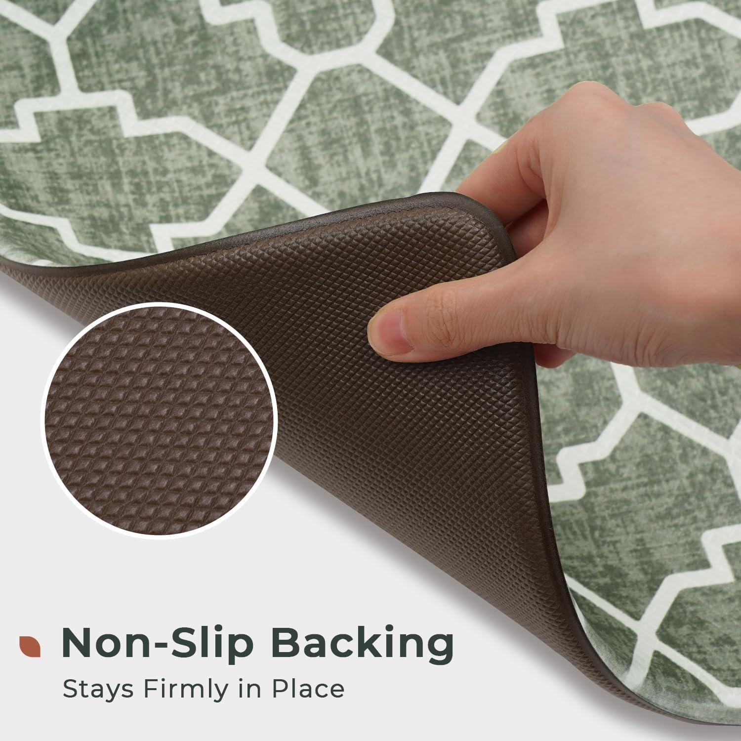 FRESHMINT Kitchen Mat Set of 2, Anti-Fatigue Cushioned Kitchen Mats for Floor, Waterproof Non Slip Comfort Standing Mat, Boho Kitchen Rug for Kitchen Decor, Sink, Office, 17″x30″+17″x47″, Sage Green