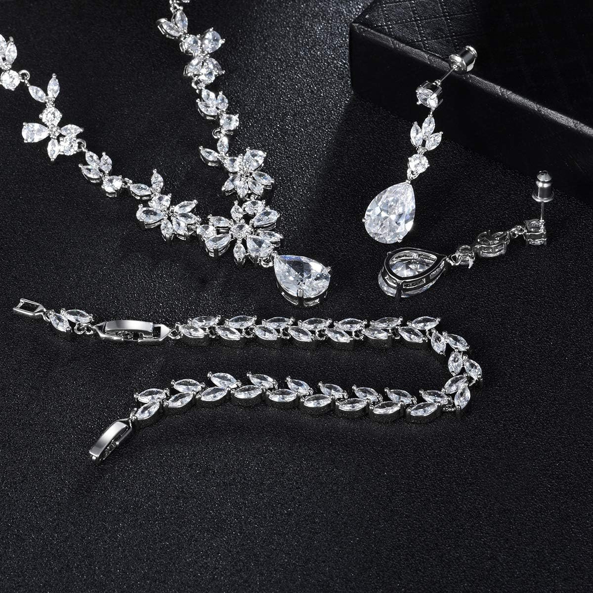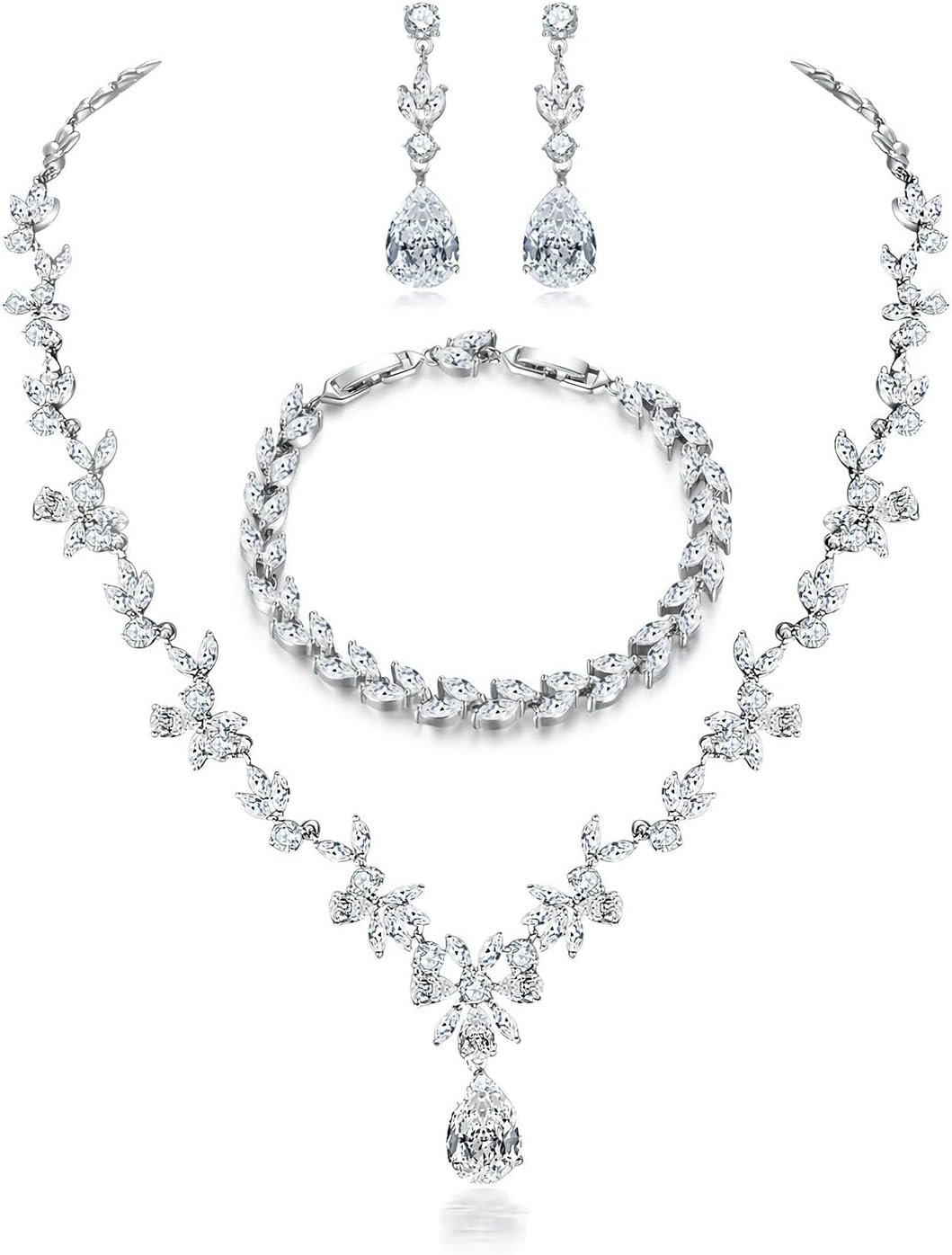 Hadskiss Jewelry Set for Women, Necklace Dangle Earrings Bracelet Set, Jewelry Set with White AAA Cubic Zirconia, Allergy Free Wedding Party Jewelry for Bridal Bridesmaid