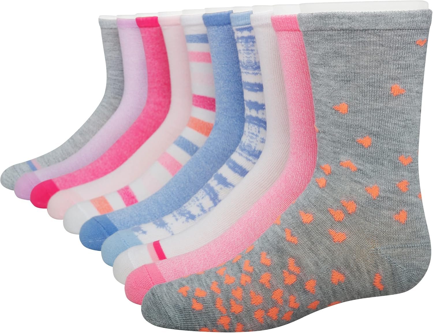 Hanes Girls’ Ultimate Fashion Crew Socks Pack, Lightweight Stretch Crew Socks, Assorted 10-Pair Pack, Small