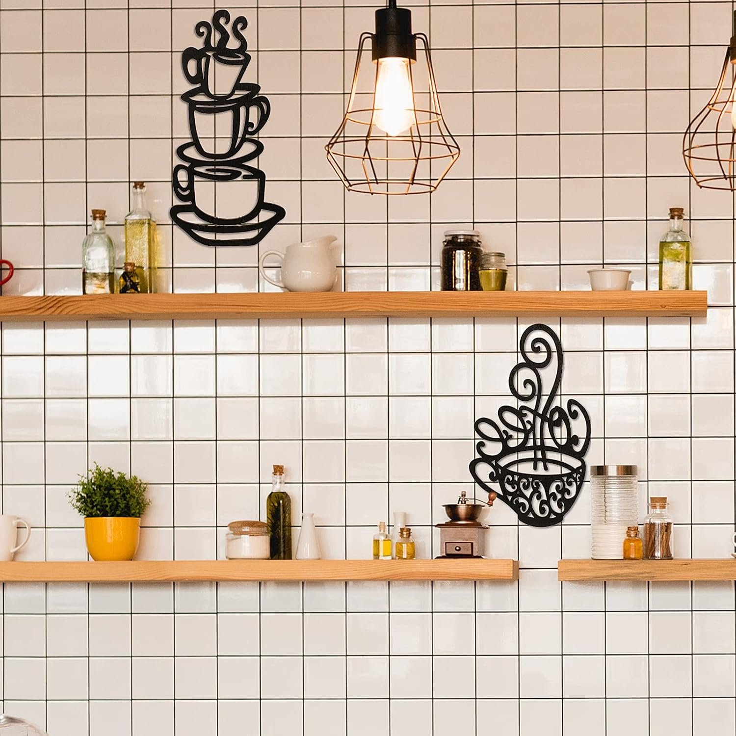 Chic design: this cup silhouette wall art basically is hollow out coffee cup design, which is a good finishing touch for your coffee bar or kitchen space, delicate design makes your room no longer monotonous, welcoming guests with a warm and novelty appearance