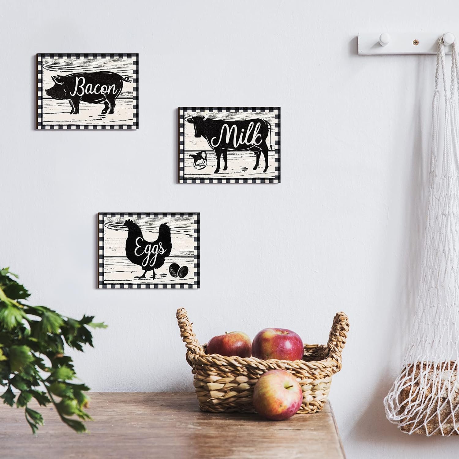 Easy to use: these farmhouse kitchen decors have hooks on the back, so you can stand them on the table or hang them on the wall; You can choose how to place them according to your needs, which is very convenient