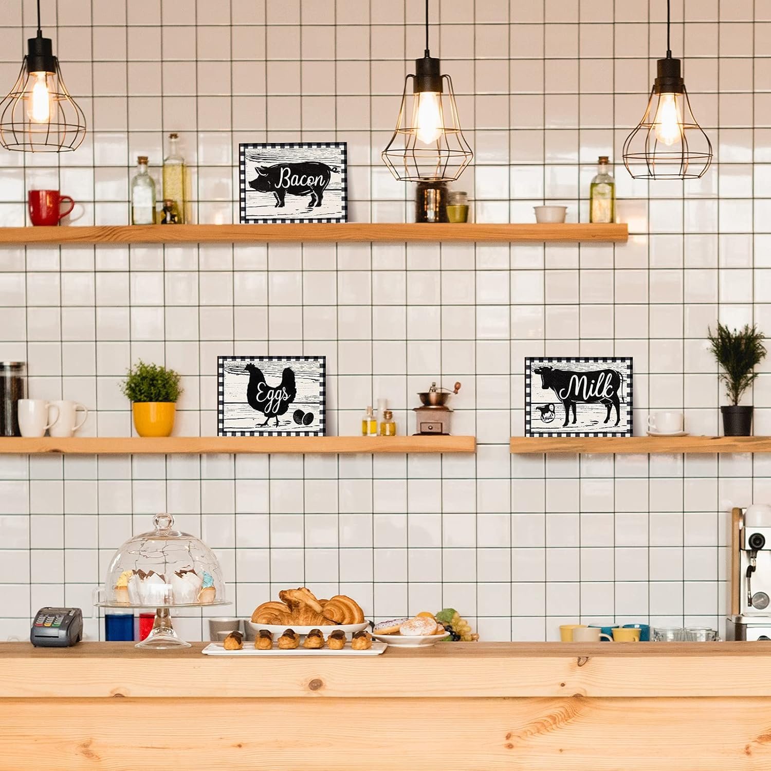 What you will receive: you will receive 3 pieces of farmhouse kitchen signs, including cow, rooster and pig decors in 7.9 x 5.9 inch; Rustic wooden signs can help you create a warm atmosphere for your home