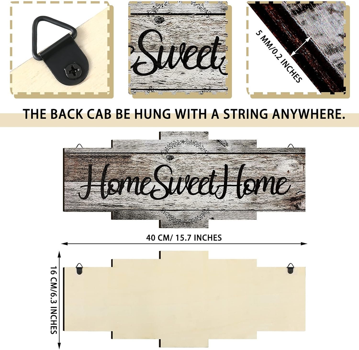 Appropriate Size: the wood wall sign is approx. 40 x 16 cm/ 15.7 x 6.3 inches, and the thickness is approx. 5 mm/ 0.2 inches; The size of the letter and the wooden board are nicely combined to add an elegant touch to your home