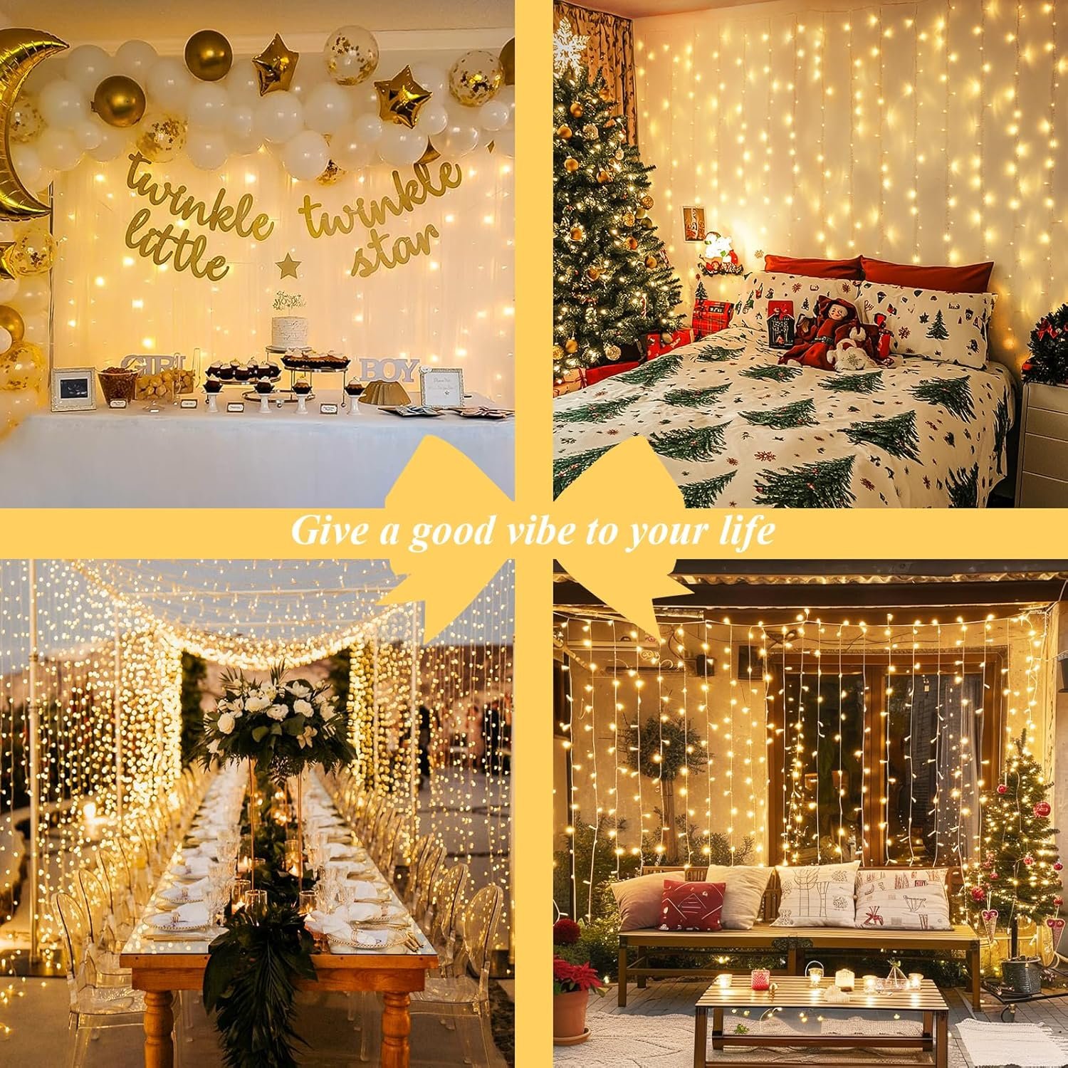 [Great Decoration for Your Home]: Our outdoor curtain lights are IP44 waterproof and can withstand rain and snow. The 9.8ft lead wire supports more help for outdoor use. It’s great for Diwali, Xmas, Ramadan, birthday parties, weddings, backdrops, or holiday decor. It is also ideal for daily use, such as hanging on bedroom tapestries, doors, walls, windows, pergolas, patios, trees, etc. If there are problems with our Christmas lights, please contact us, we will offer a return or refund service.
