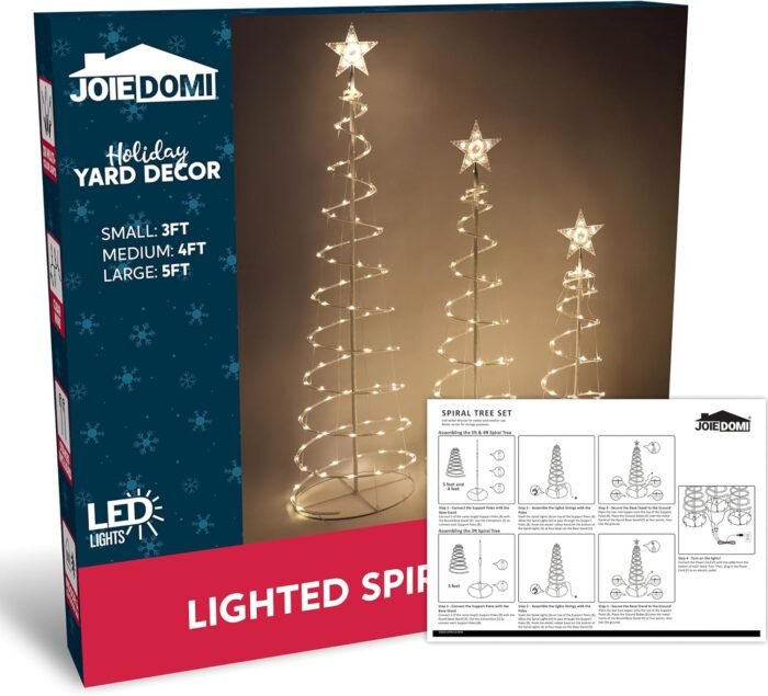 JOIEDOMI 3 Packs Spiral Tree Christmas Decoration Outdoor, 218 LED Xmas Tree Lighted Hoilday Display Decorative Yard Lights with Stakes for Outside Lawn Garden, Christmas Eve Night Décor, Warm White
