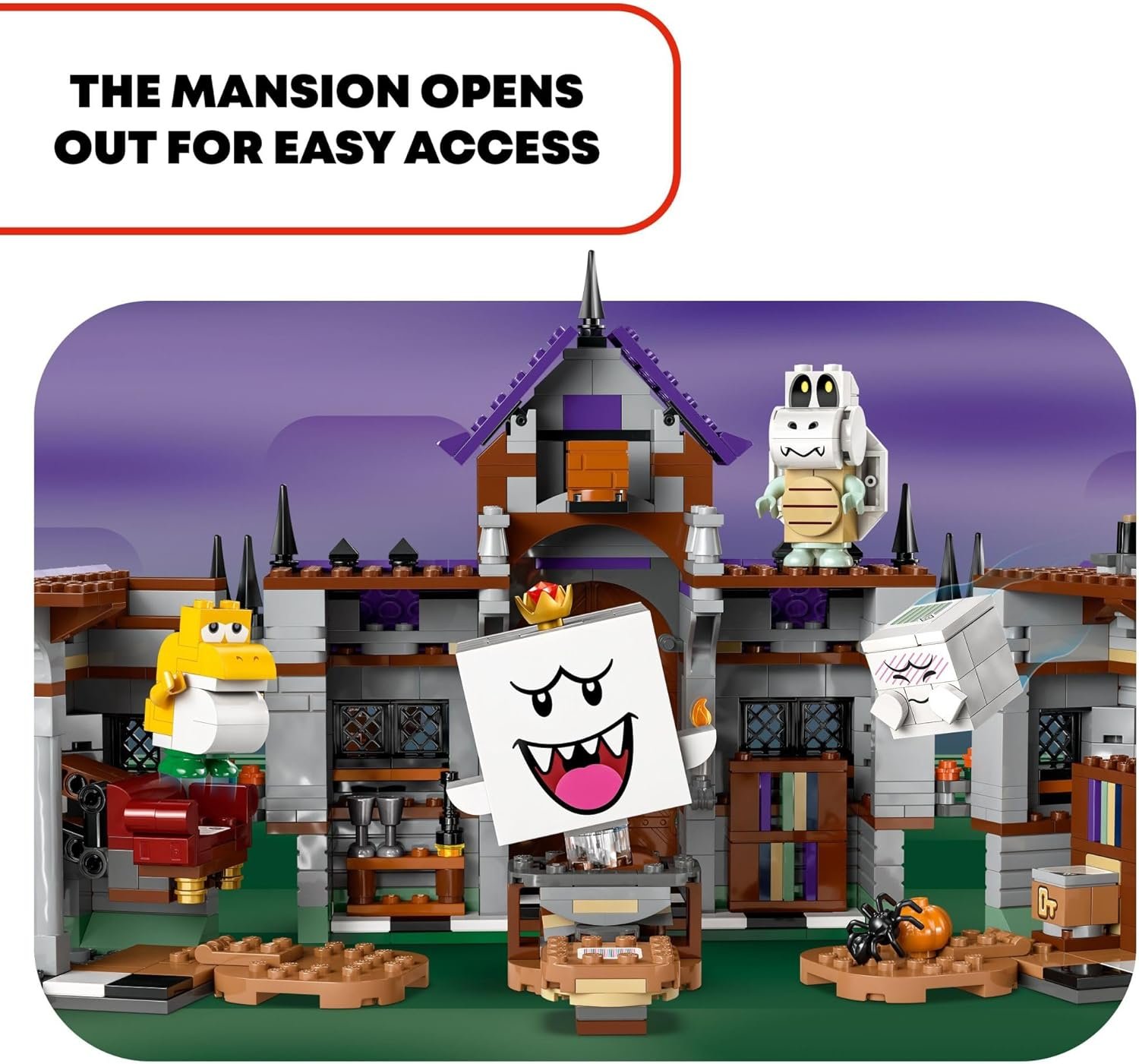 Encounter ghostly characters and search for the key to a treasure chest at King Boo’s Haunted Mansion (71436) with this LEGO Super Mario toy playset for kids. A Super Mario themed Halloween gift idea for boys, girls and gamers aged 8 and up, this ghost toy set features a buildable toy haunted house that opens out for easy access to playful details such as an elevating sofa and a bookcase with a key-reveal function. It also includes 4 LEGO Super Mario toy figures – King Boo, a Yellow Baby Yoshi, a Dry Bones and a Boo. Add a LEGO Mario, LEGO Luigi or LEGO Peach figure (not included) for interactive play. Help them collect rewards from the Coin Block, Chest Block and Key Block, defeat the Boo and Dry Bones, topple King Boo from the table in the courtyard and ultimately open the treasure chest. Find building instructions in this Halloween building toy set or on the LEGO Super Mario app, which also offers inspiration for creative ways to build and play. Contains 932 pieces.