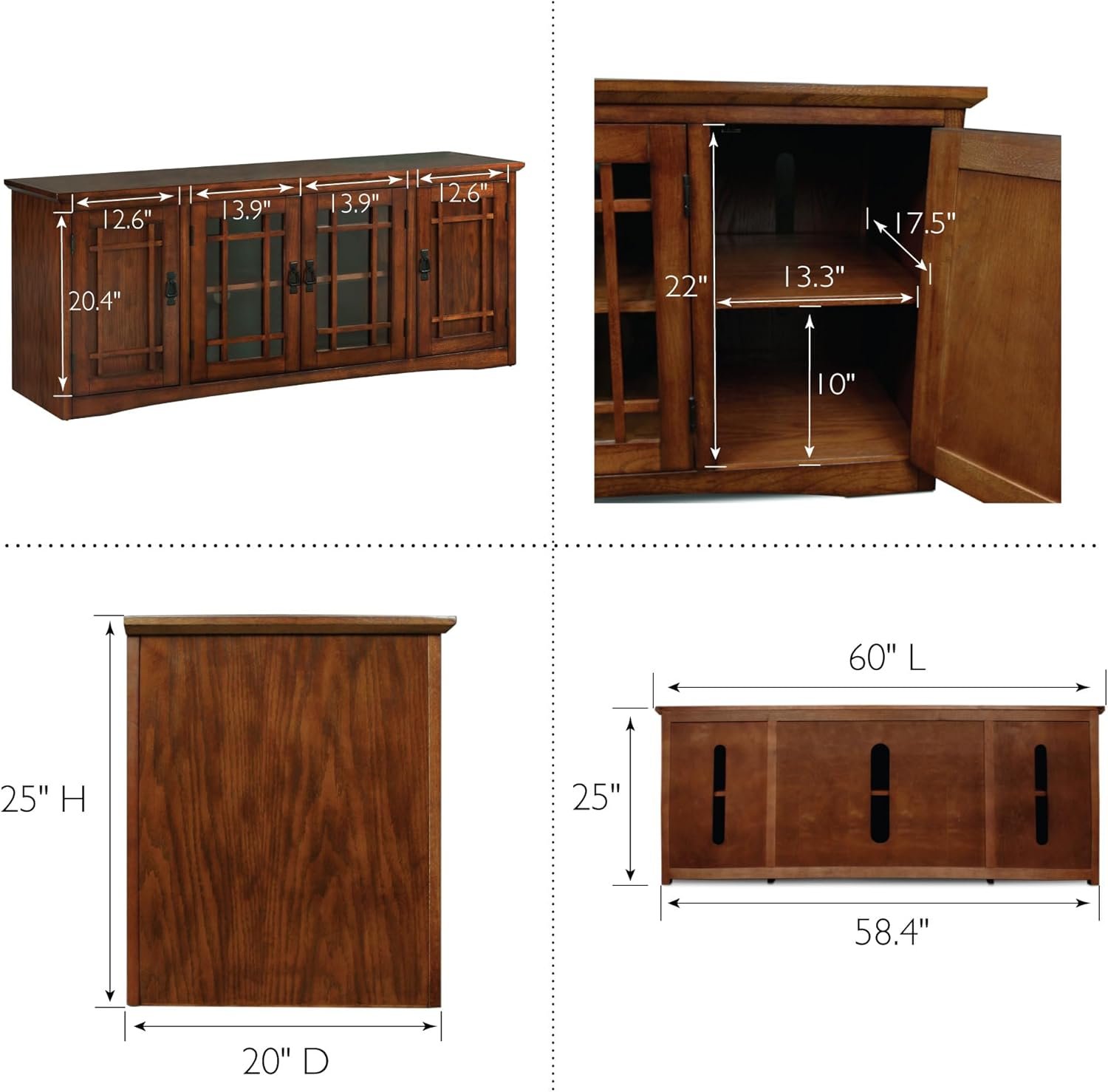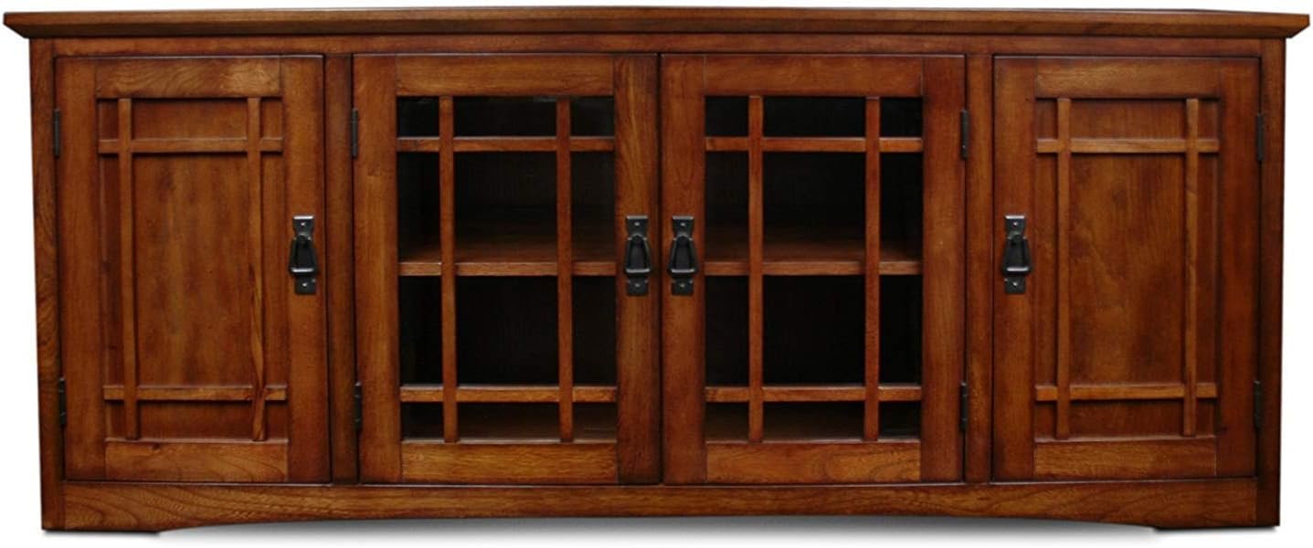 Leick Home 82360 Solid Wood Mission Oak Four Door TV Stand For 65″ TVs Universal TV Console Living Room Storage Shelves Entertainment Center, Mission Oak