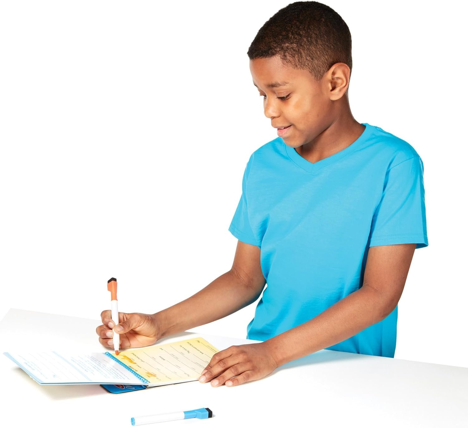 Take fun on the go with this “re-markable” take-anywhere book of dry-erase marker games! Choose from 17 different word, number and picture games for one or two players, including classics like hangman and I-spy, as well as games that are sure to become new favorite challenges. Two included dry-erase markers with built-in eraser caps store conveniently in the cover of the spiral-bound book, making it a perfect travel activity for kids six and older. It’s easy to write on, erase, then play again! This product is certified by the Forest Stewardship Council. FSC certification ensures that products come from responsibly managed forests that provide environmental, social, and economic benefits, and that forests are protected for future generations. Please note that FSC certification applies to new inventory only (FSC C156584)