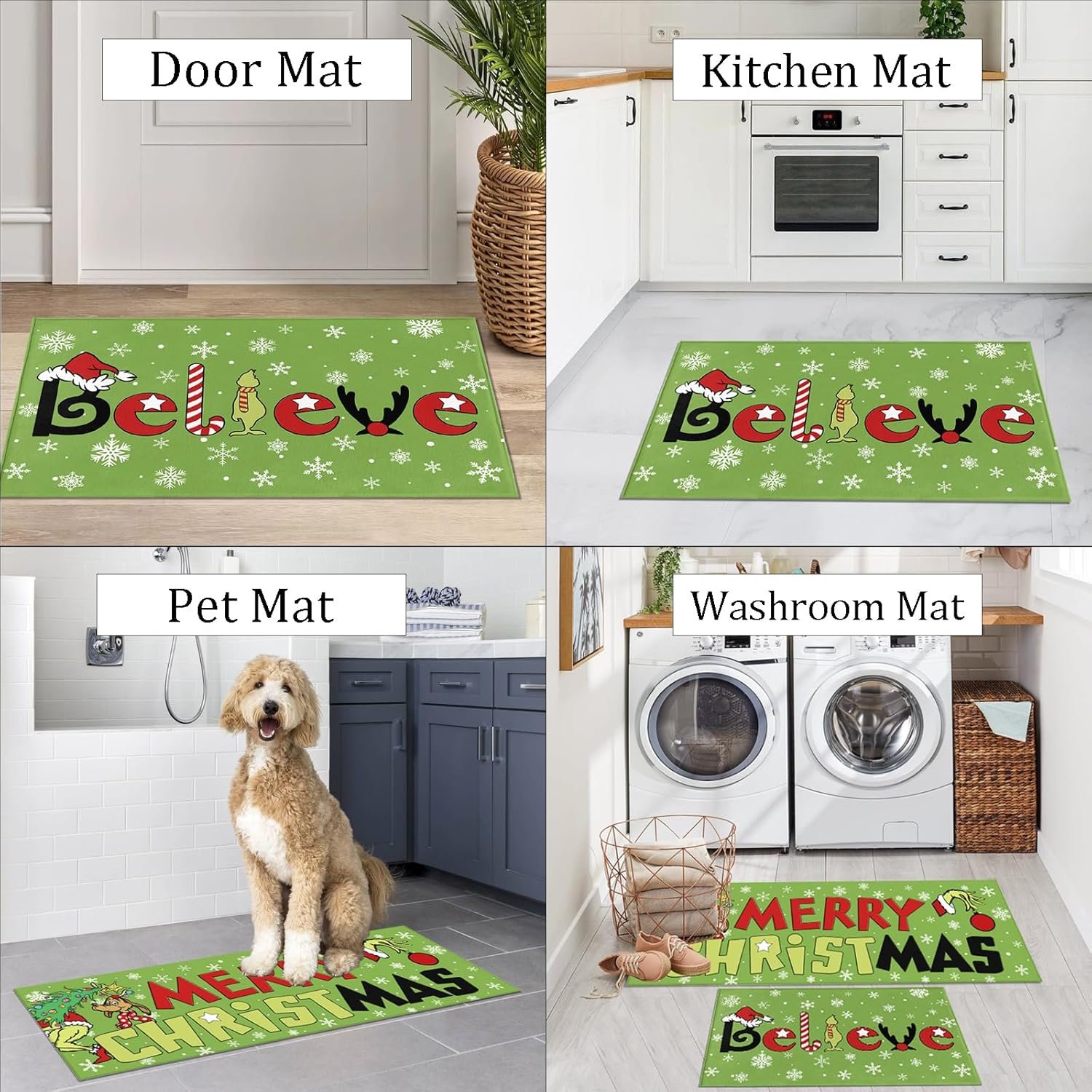 Festive Christmas Decorations : Our Christmas door mats feature cheerful designs with “Merry Christmas,” “Believe,” elements. Whether placed by the kitchen sink, stove, or at the entrance, these mats bring warmth and a joyful holiday atmosphere to your home