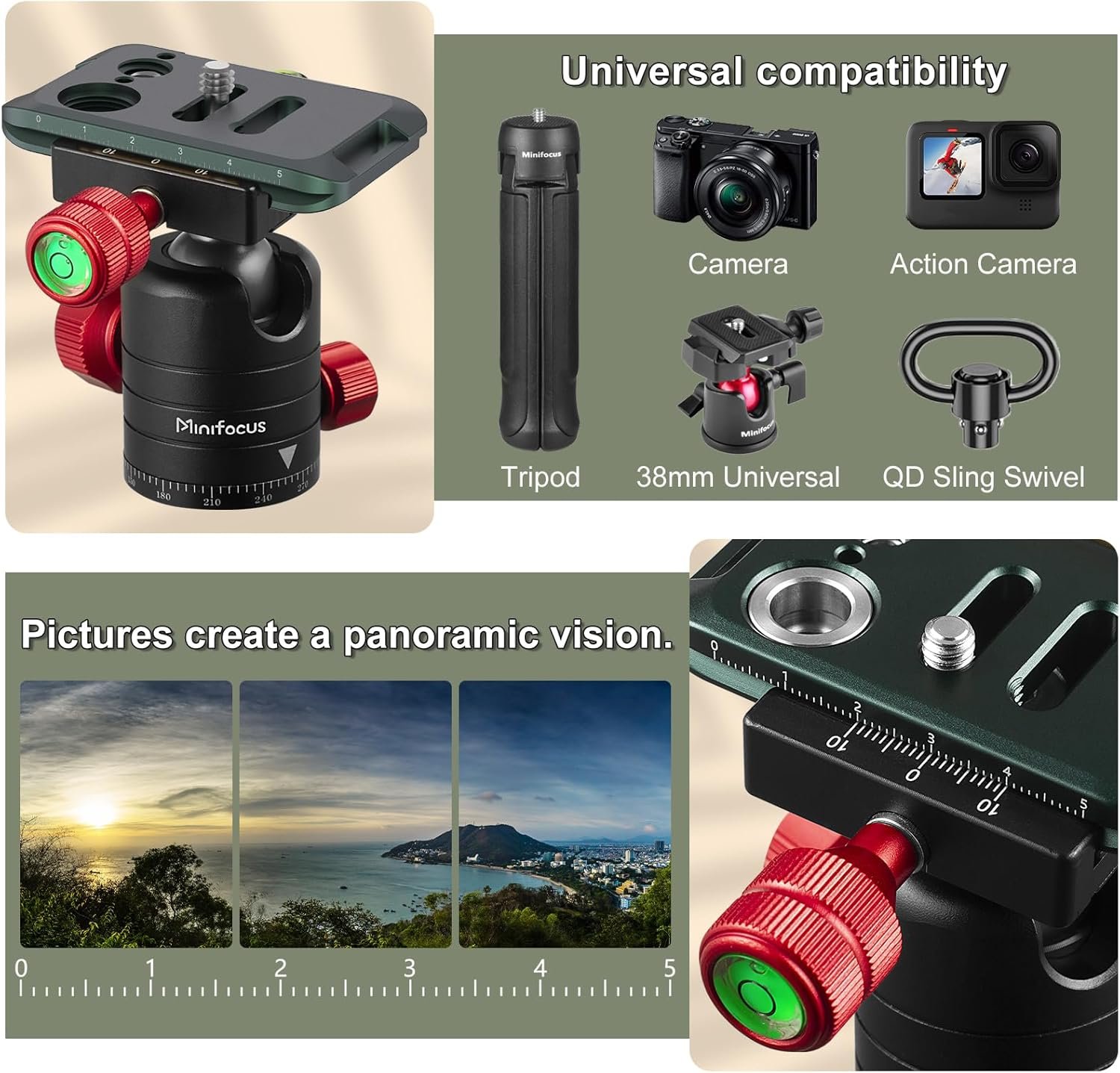 Compatible with 1/4″-20 camera screw. Compatible with Standard for Tripod Ball Head for Camera Tripod Ball head.