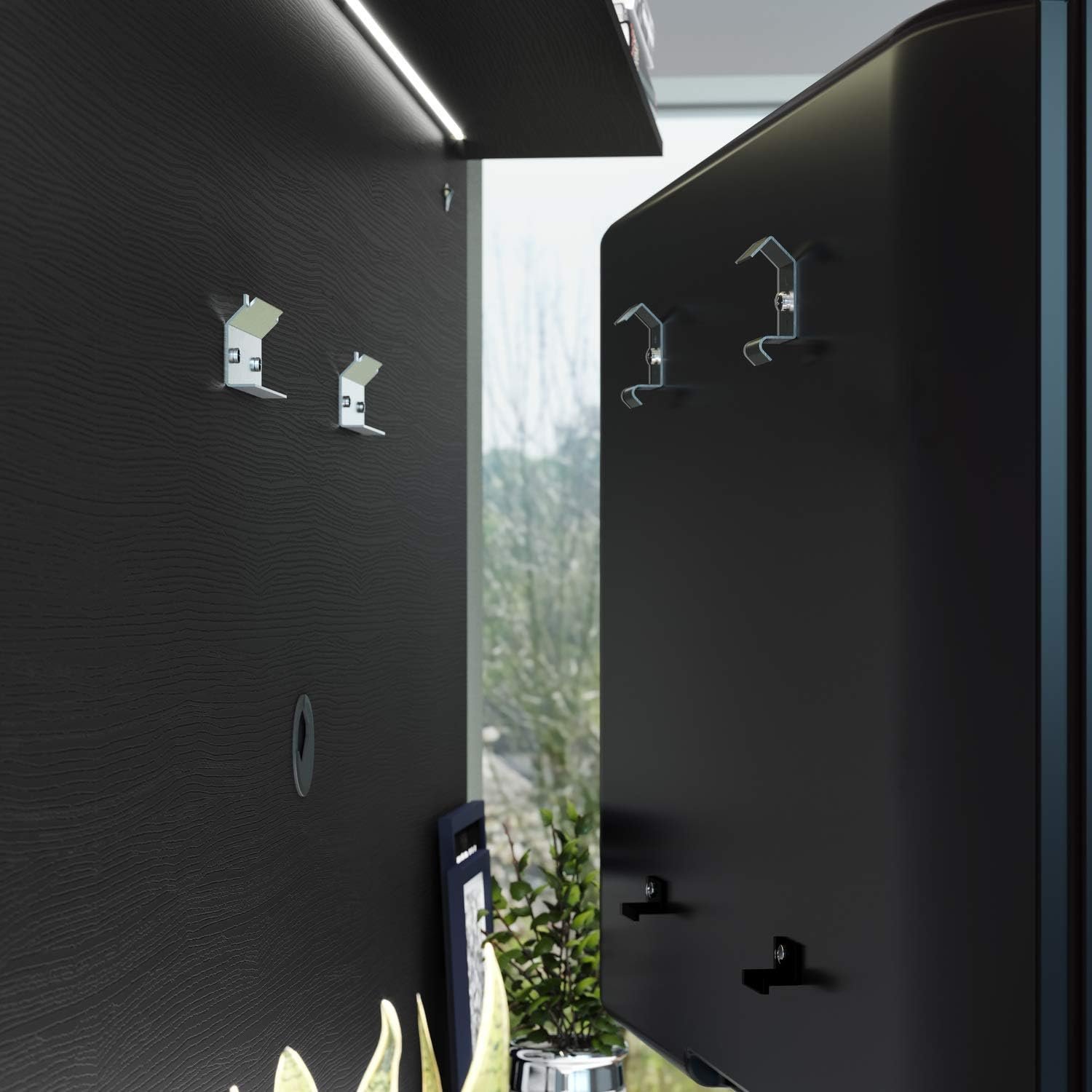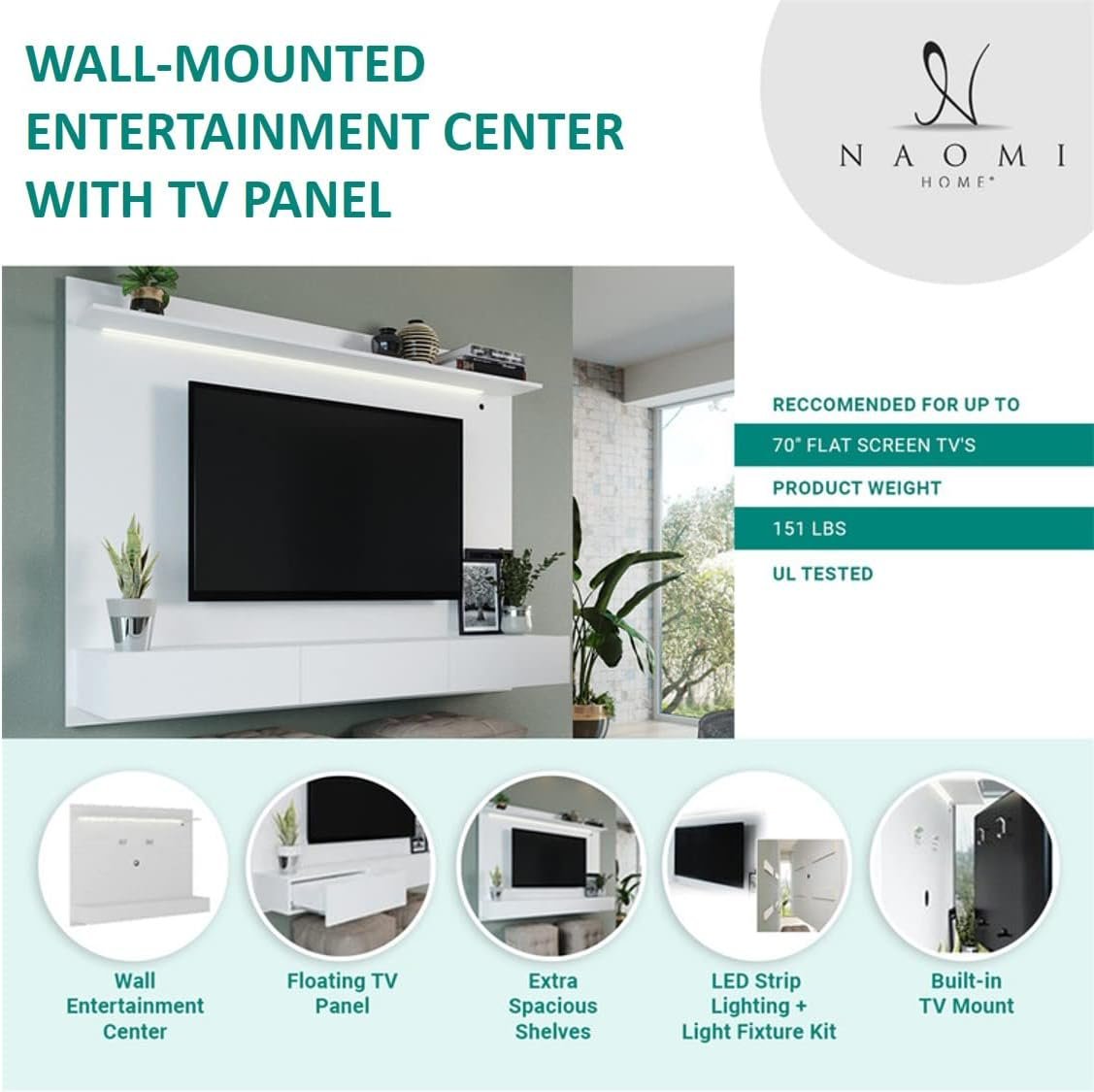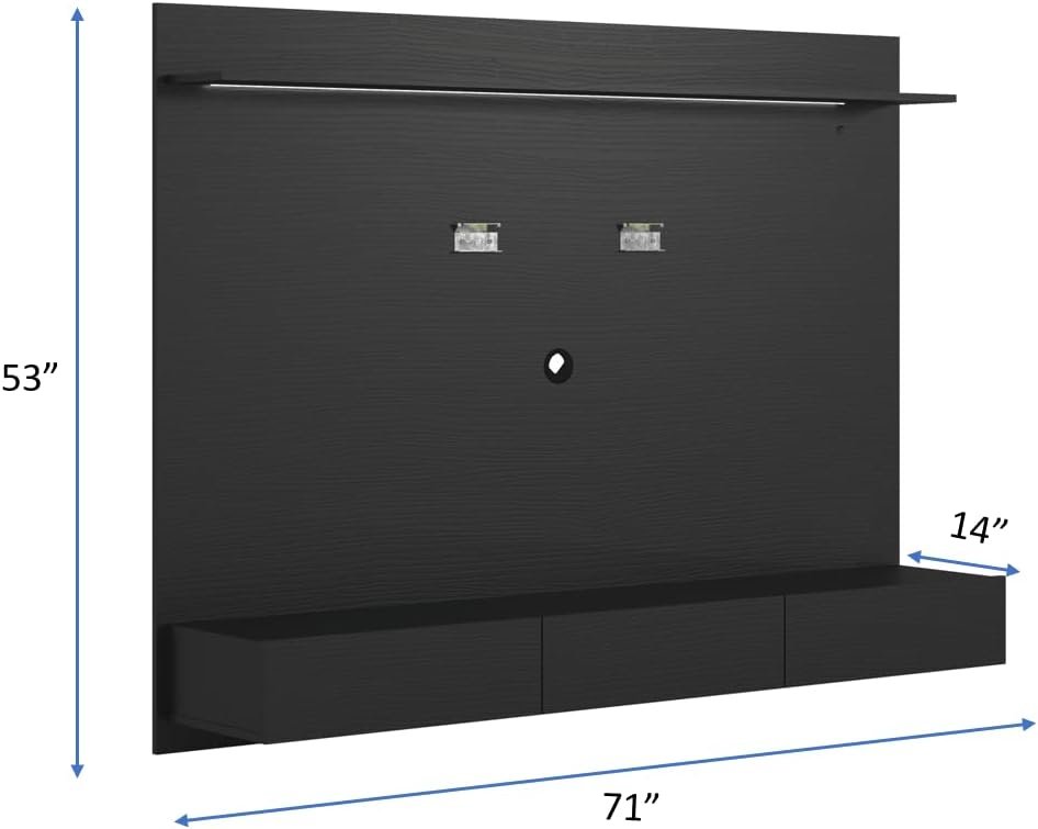 Display your TV and give your living space a touch of style with our Naomi Home Wall Mounted Entertainment Center. This TV Wall Panel adds a Sophisticated and Modern look to your living room. Wall units for living room with storage features a beautiful Midcentury design with plenty of features in a beautiful Black color.