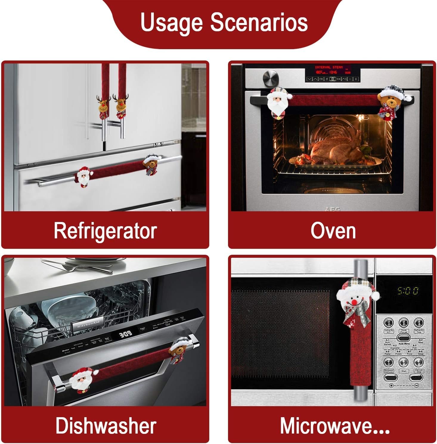 Easy To Attach And Remove– Each Christmas handle cover has a top to bottom adhesive tape, simply attach them to your refrigerator/fridge/Oven/Microwave door handles and other furniture door handles.