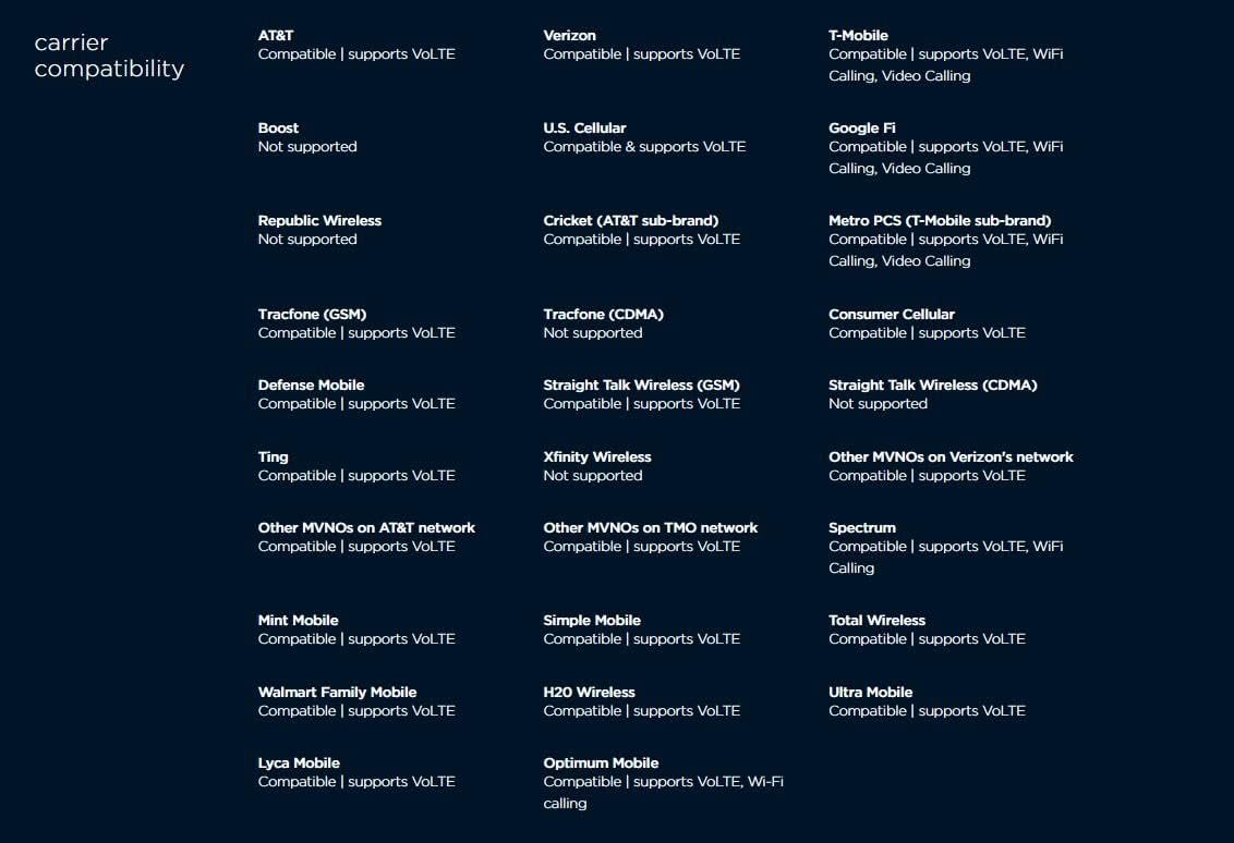 Carrier compatibility: AT and T: VoLTE, Verizon: VoLTE, T Mobile: VoLTE, WiFi Calling, Video Calling, Tracfone: GSM, Spectrum: VoLTE, WiFi Calling. Does not support: Boost: Republic Wireless, Tracfone (CDMA), Straight Talk Wireless (CDMA), Xfinity Wireless. For all carrier compatibility details – please check the product images in detail.Form_factor : smartphone.Other camera description:Front,Rear