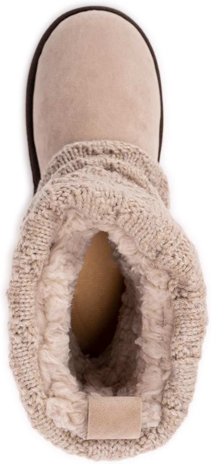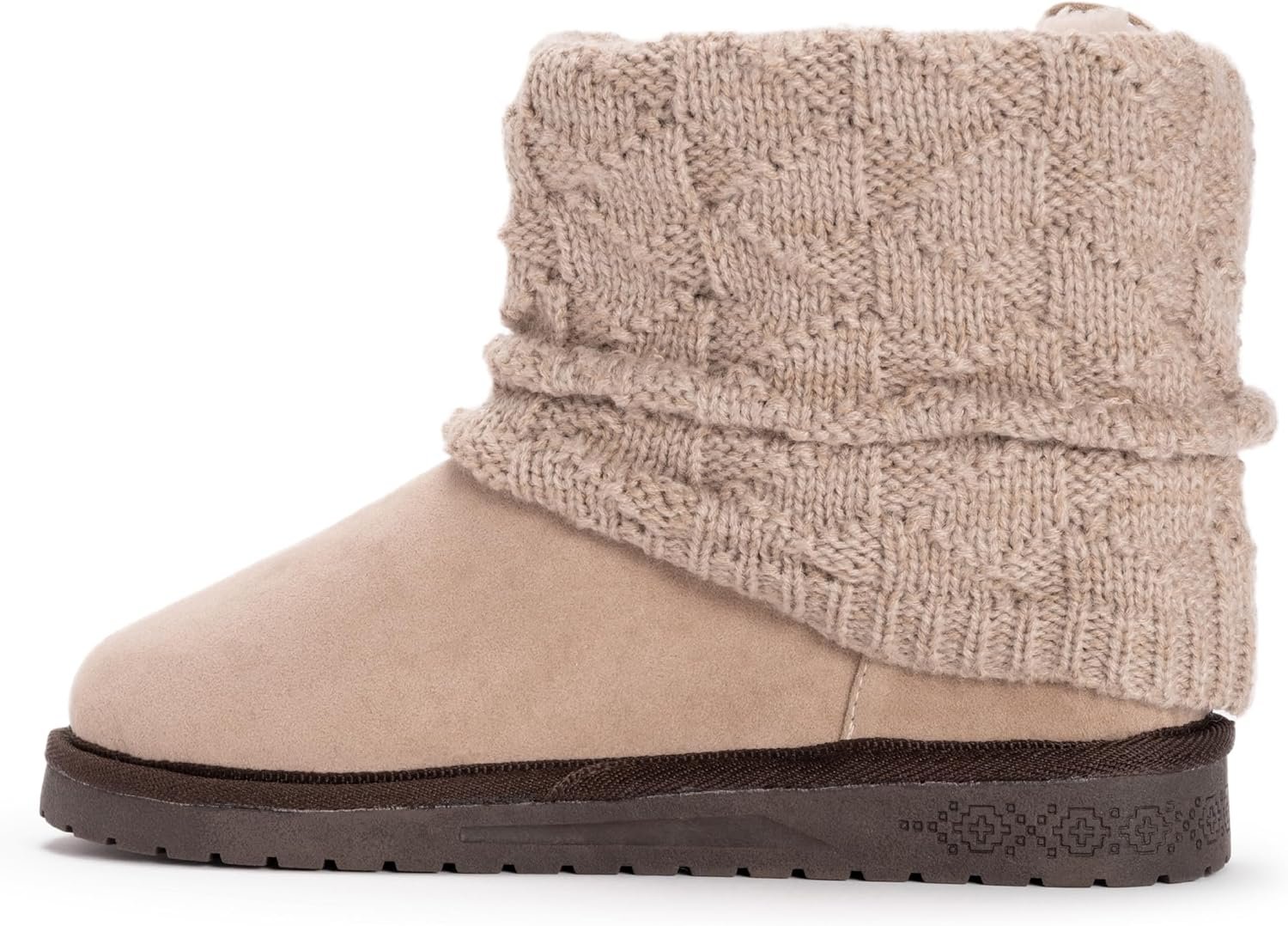 Tackle cold weather this season with Essentials by MUK LUKS Women’s Laurel Boots. A classic ankle bootie with a decorative knit overlay and pull-on tab lets you slip into the plush comfort of these casual booties with ease. Wipe with a damp cloth to clean, no bleach, lay flat to dry. Imported. – Treaded TPR Sole – 100% Polyester Insole – 100% Polyester Faux Suede Upper -100% Acrylic Knit – 100% Polyester Faux Fur Lining – No Heel – Water Resistant – Multiple color options available – Women’s Whole and Wide Sizes 6-11 (1/2 sizes order up)