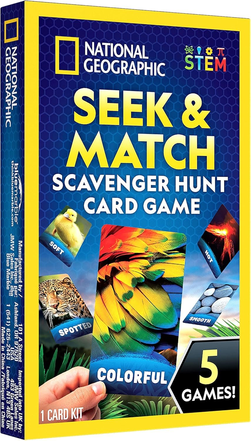 National Geographic Scavenger Hunt for Kids Card Game – Seek & Match Objects from 40 Jumbo-Sized Cards, Camping Games, Activities for Toddlers, Car Game, Kids Outdoor Activities, Stocking Stuffers