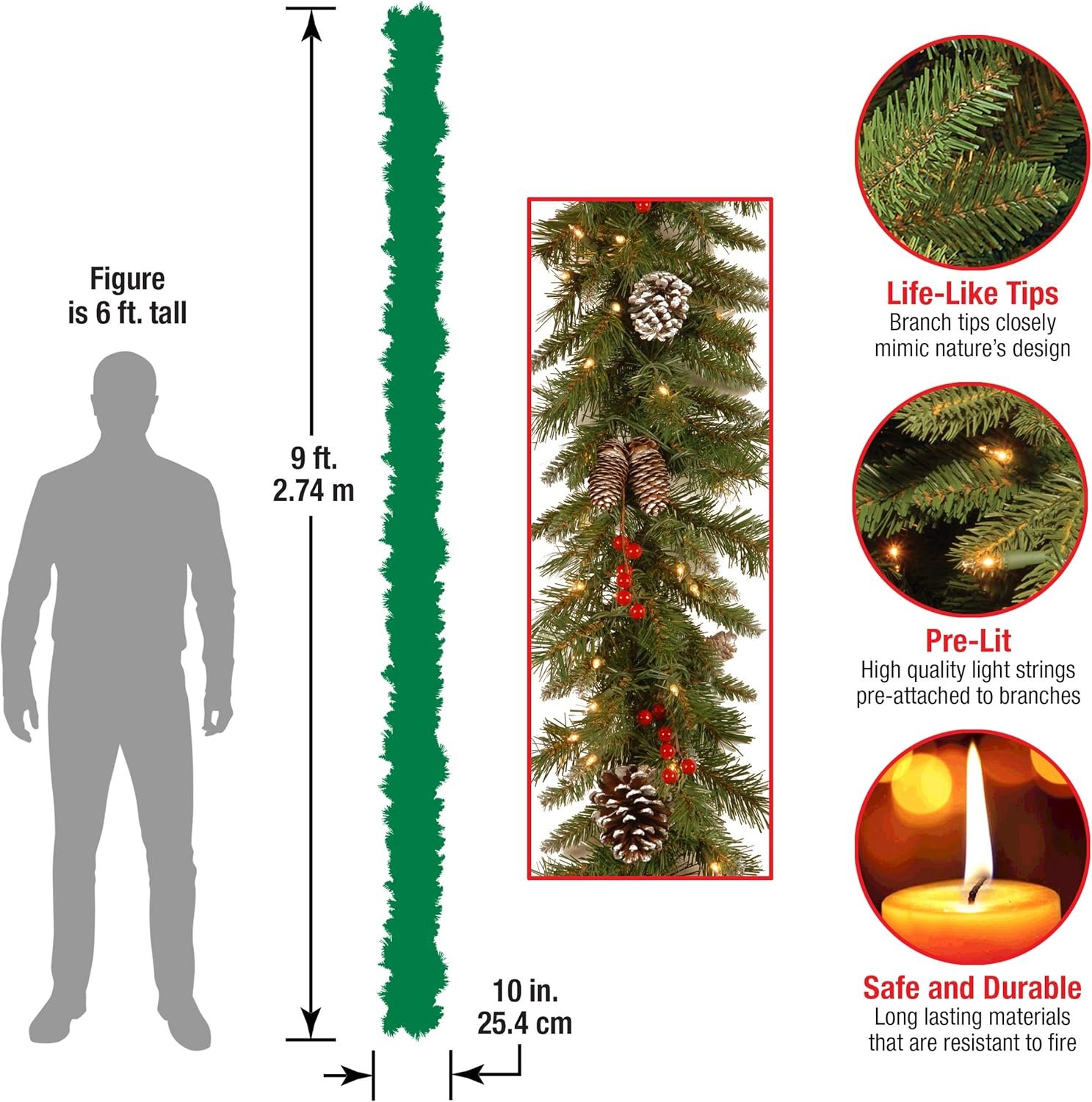 Transform your home for the winter holidays with National Tree Company’s Pre-Lit Artificial Christmas Garland. Designed with a Frosted Berry branch base, this garland is 9 feet long and decorated with pine cones and berry clusters. These beautifully ornate decorations complement the garland’s natural looking branches. Made to look and feel lifelike, the stunning realism of the tree is defined by its close attention to detail, featuring tens of individually crafted branch tips that create a full bodied garland. This fantastically festive garland is strung with white UL lights prior to packaging for a more convenient setup. The lights operate individually, so if the bulb lens has not been cracked or broken, the light set will continue to illuminate except for any individual bulbs that are not working. To power the lights, simply plug them into the nearest outlet and let the pre strung lights illuminate your home with the warmth and cheer of the holiday season. Hang this decorative garland over any door, window or mantle to bring a Christmas ambience into any room or covered porch. Constructed with sturdy, high quality materials and hypo-allergenic, fire-resistant needles, this tree is built to bring holiday cheer for years to come. This hanging decoration is suitable for both indoor and covered outdoor use. At National Tree Company, we strive to create high quality Christmas decorations to help you transform your home so you can keep making every holiday moment magical.