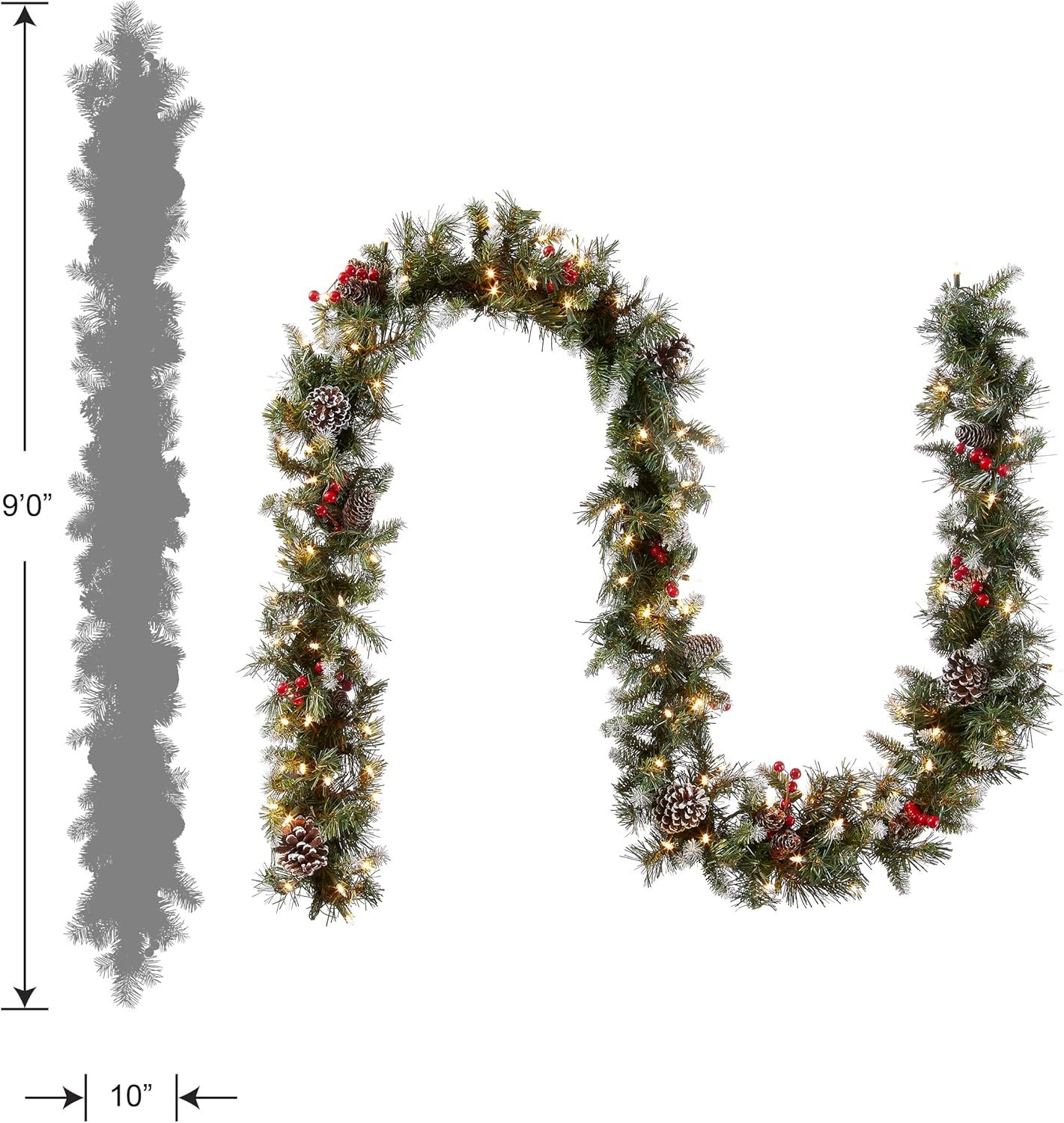 National Tree Company Pre-Lit Artificial Christmas Garland, Green, Frosted Berry, White Lights, Decorated with Pine Cones, Berry Clusters, Plug In, Christmas Collection, 9 Feet