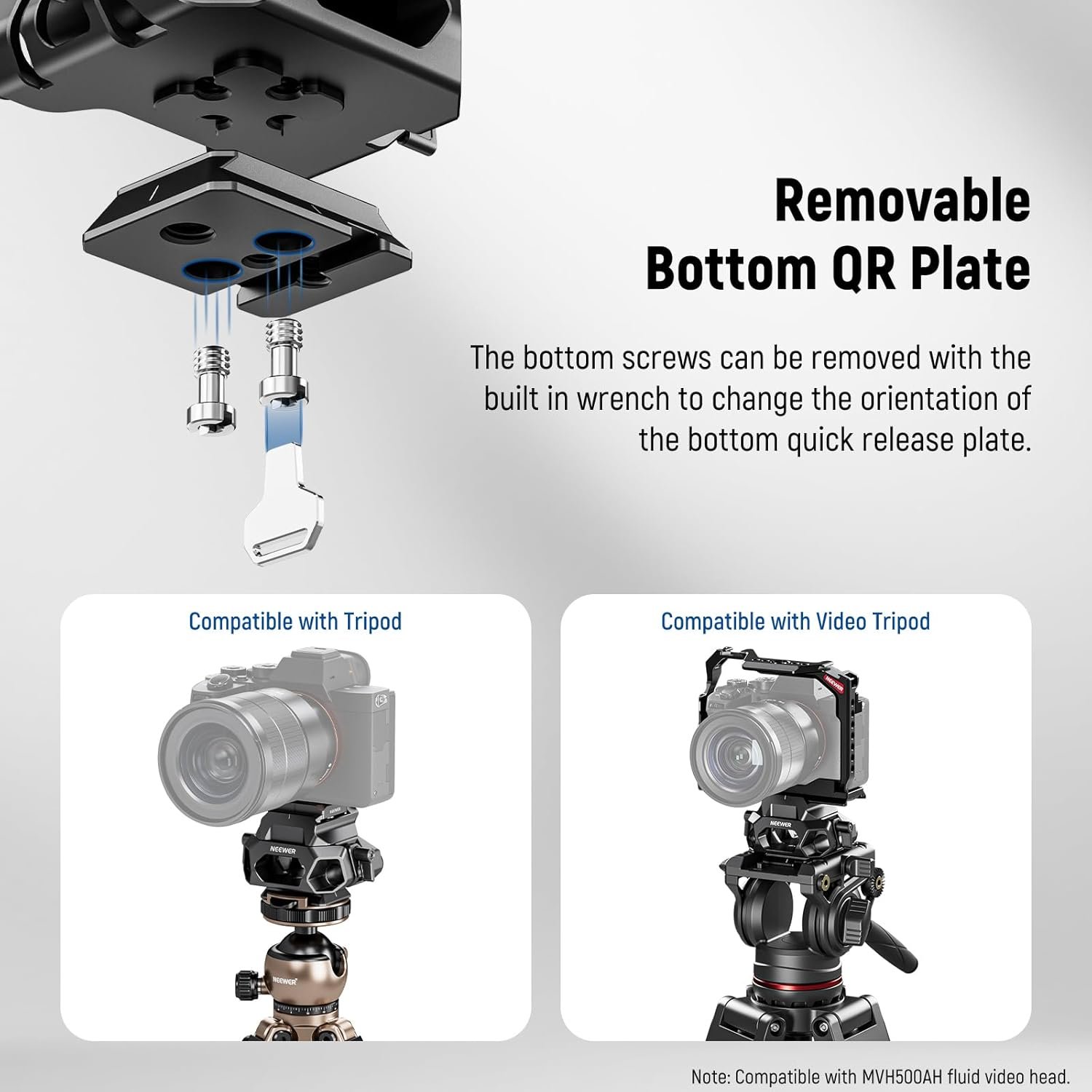 【Compatible with Arca Type Tripod Heads】 The base with 1/4″ and 3/8″ threads is compatible with Arca type quick release tripod heads, video heads, and fluid heads