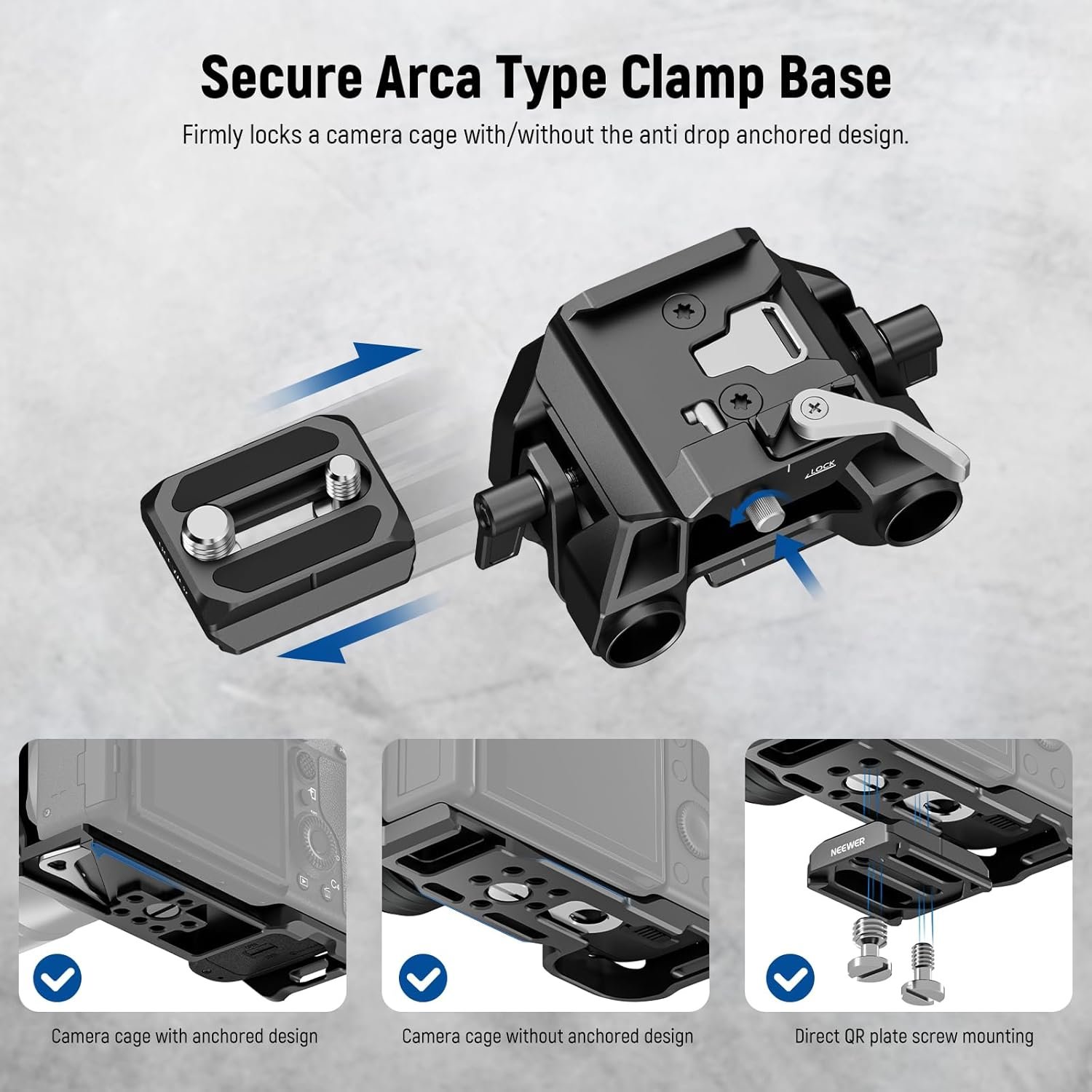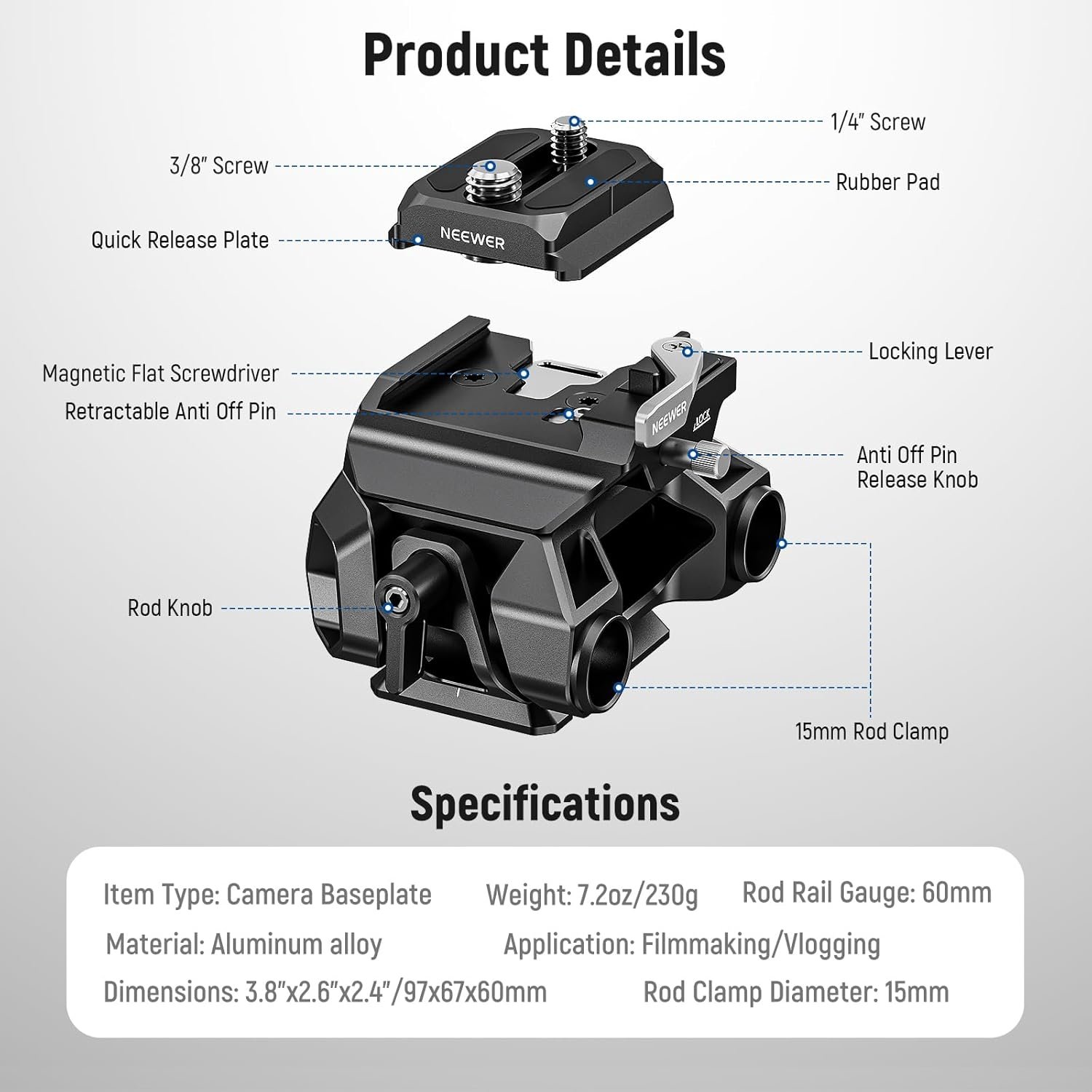 NEEWER 15mm LWS Baseplate with Arca Type QR Plate & Base, 15mm Rod Clamps, Retractable Anti Off Pin Compatible with DJI Compatible with SmallRig Shoulder Rig, SR015