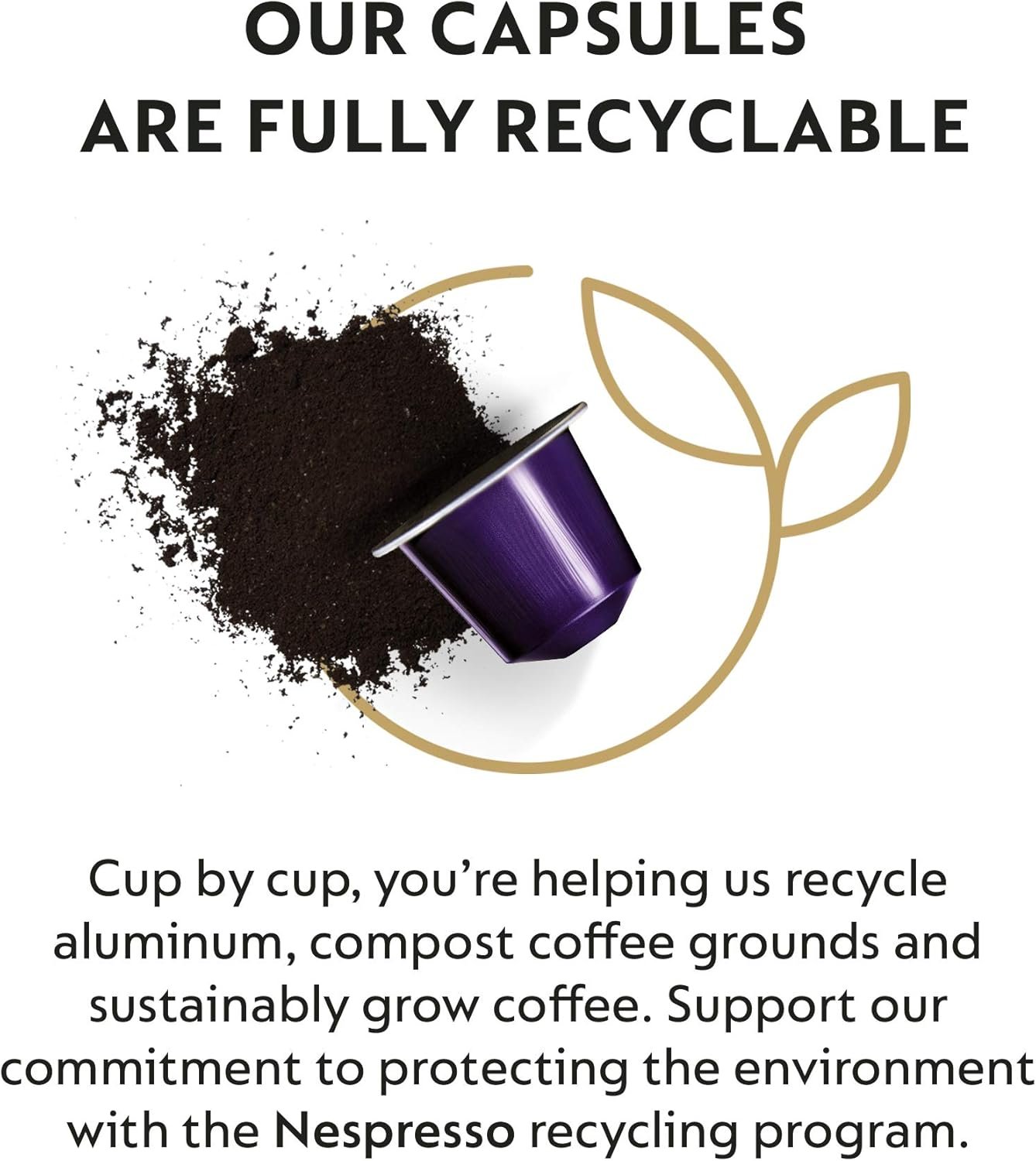 SUSTAINABILITY FIRST:;As a certified B Corporation,;Nespresso;meets the highest standards of verified social and environmental performance, joining a global movement using business as a force for good.;;Nespresso aluminum capsules are fully recyclable and guarantee coffee freshness – we provide different options for recycling your used aluminum coffee pods to fulfill our collective commitment to protecting the environment.