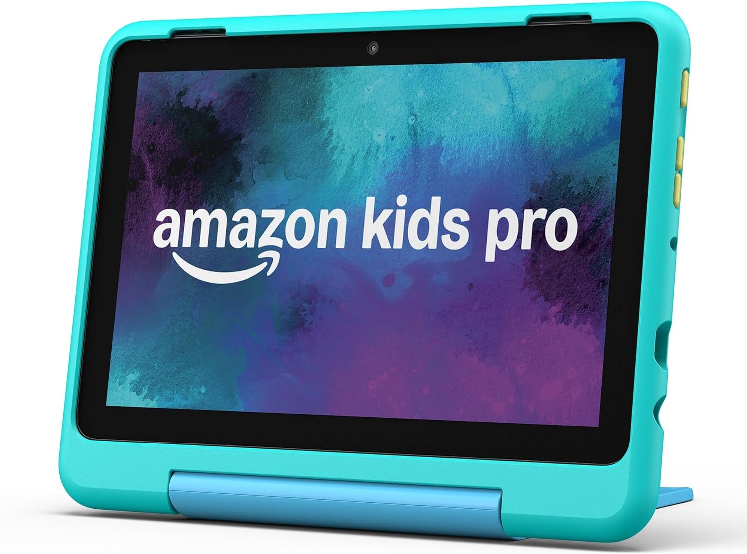 New Amazon Fire HD 8 Kids Pro tablet, ages 6-12. Bright 8″ HD screen, includes ad-free content, parental controls, 13-hr battery, slim case for older kids, 32GB, Hello Teal, (2024 release)