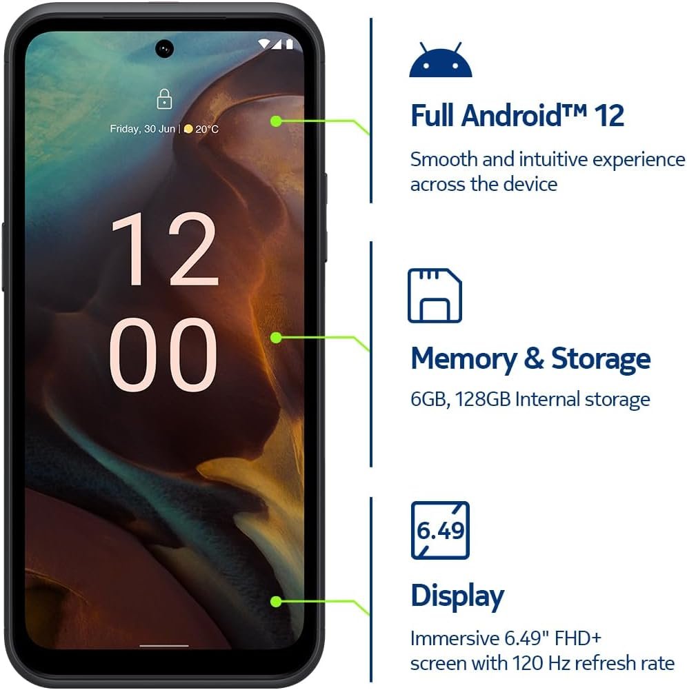 Nokia XR21 5G | Android 12 | Unlocked Rugged Smartphone | Dual SIM | US Version | 6/128GB | 6.49-Inch Screen | 64MP Dual Camera | Midnight Black