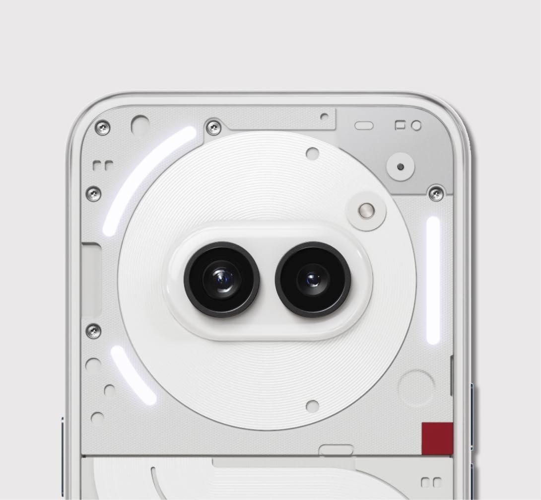 【Innovation personified】With Phone (2a),by placing the cameras inside the NFC coil,we create a new product icon: the eyes.Behind these is the hub of intelligence that powers the phone, much like a brain.The camera captures visual information,the Glyph Interface transmits data through visuals and audio,and the NFC coil sends and receives digital information.Elements are precisely positioned using a circular grid system.Extends all the way to the edge of the phone to create more rounded corners.Giving a coherent and softer overall look and feel.