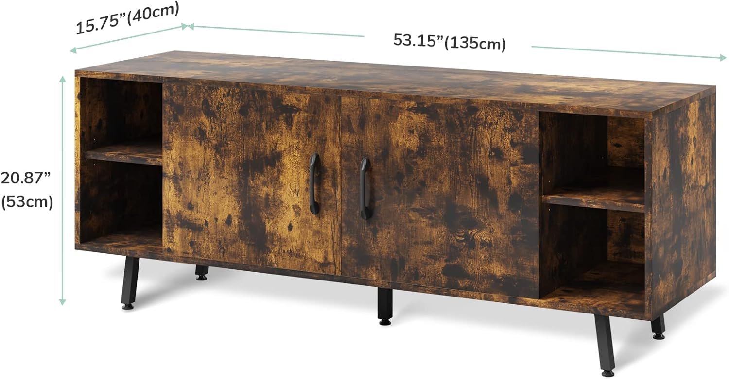 【MODERN FARMHOUSE DESIGN】Natural wood grain and retro finish create a warm and inviting vibe, This TV stand comes in two colors: Rustic Brown, and Dark Walnut. You exactly choose between two unique colors to find the one that suits your home style.