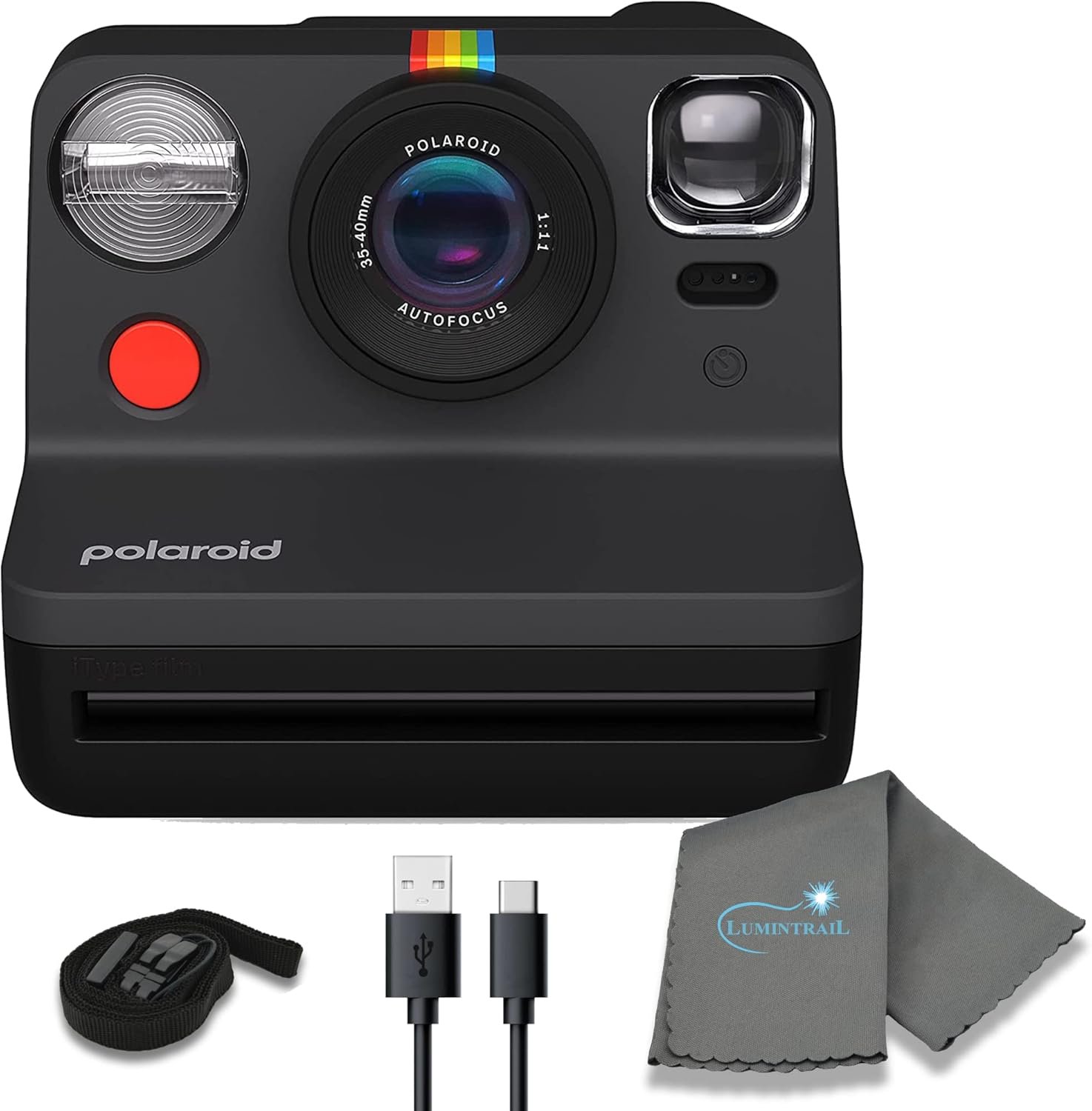 What’s Included: Gen 2 Now instant camera, USB Cable, Neck Strap, and a Lumintrail Cleaning Cloth