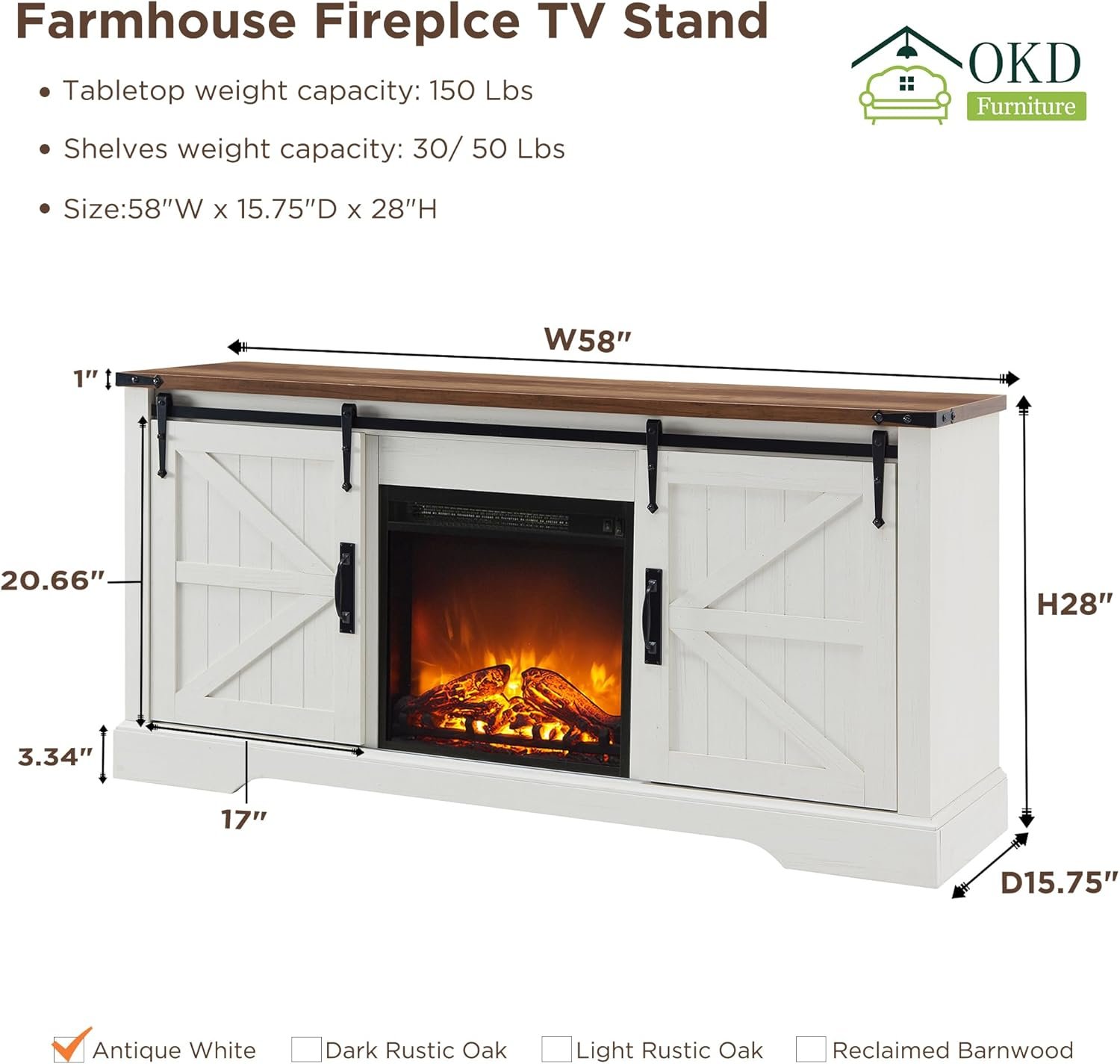 OKD Farmhouse TV Stand With 18 Inch Electric Fireplace for TVs up to 65 Inch