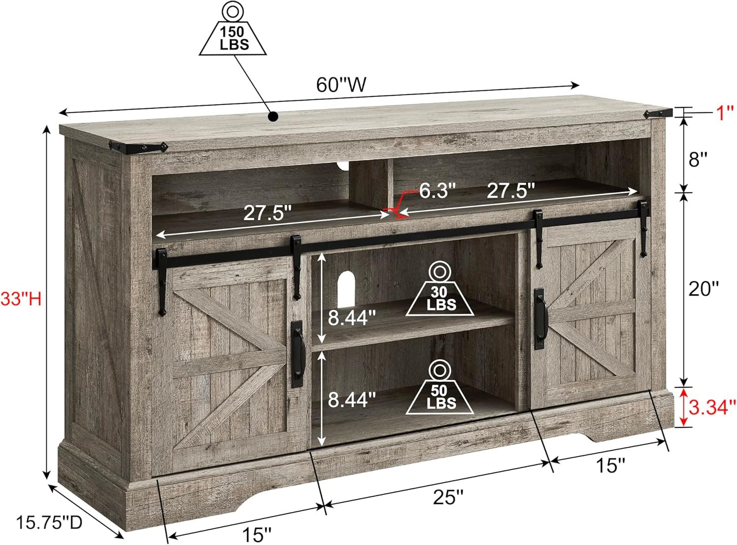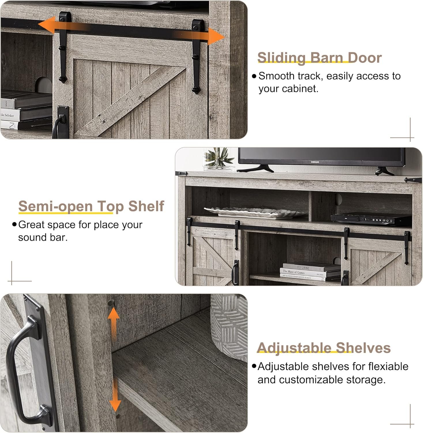 Ample and Flexible Storage: Each storage cabinet has adjustable end shelves which offer lots of storage, while the 6.3 inch stationary middle shelves are roomy for housing media equipment. Two sliding barn doors can easily be positioned as you desire. For an uncluttered look, you can slide the doors over the two ends and use those areas for hidden storage.