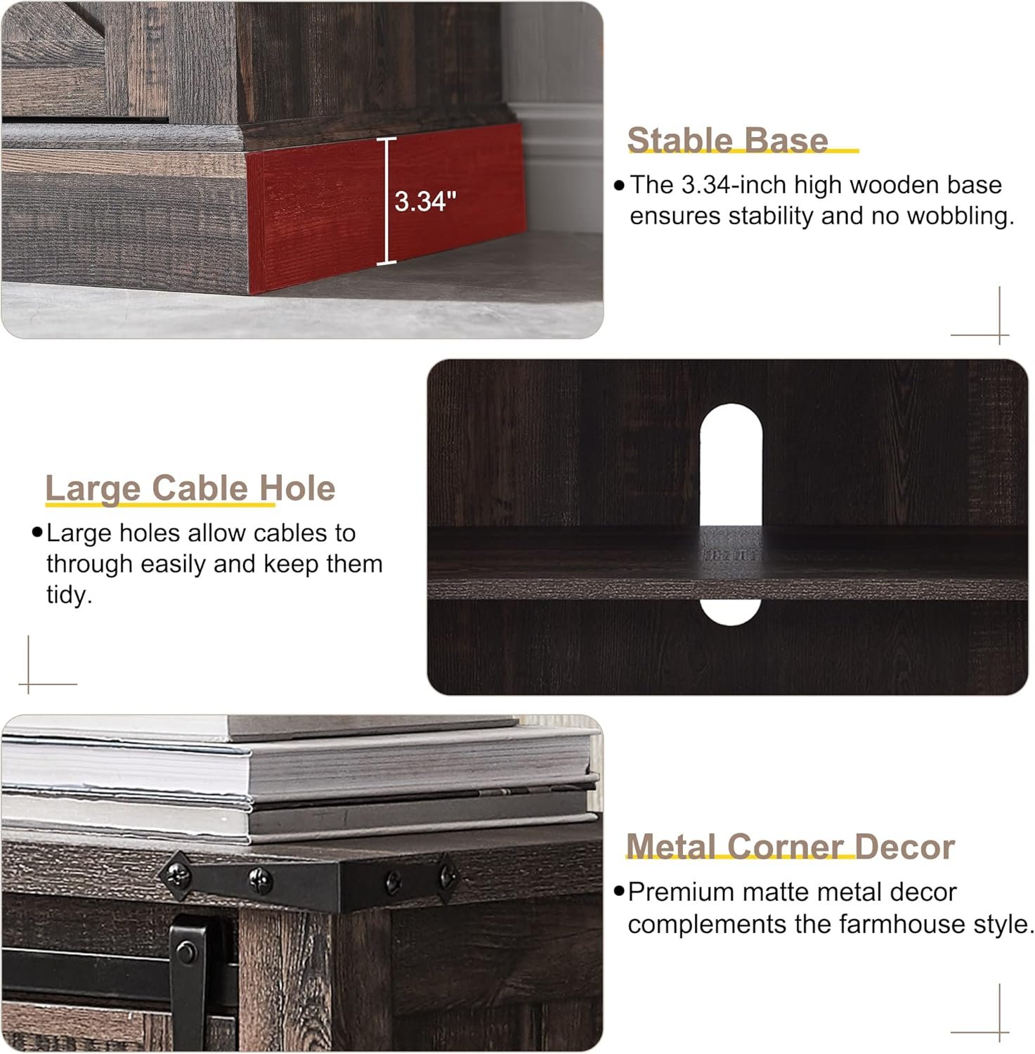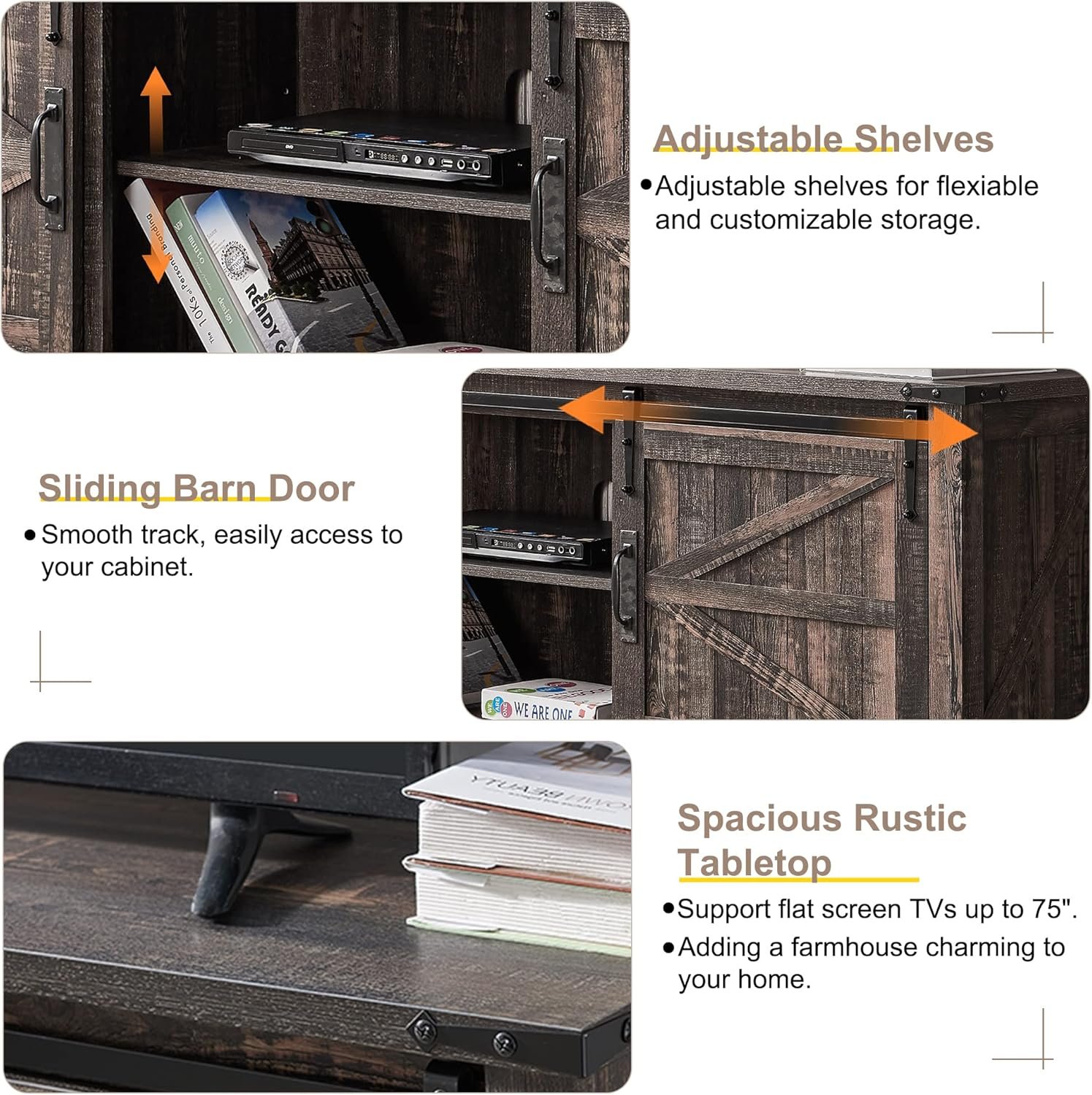 MODERN FARMHOUSE or RUSTIC CLASSIC AESTHETIC: This TV entertainment stand perfectly combines modern, and rustic farmhouse style, a great way to add personality and charm to your living room. The interior adjustable shelves and 2 cable management holes behind the door help the easy organization and hiding wires