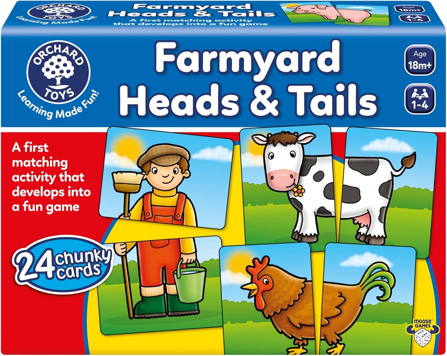 Orchard Toys Moose, Farmyard Heads & Tails Game. A First Matching Activity That develops into a Fun Game. 24 Chunky Cards. Age 18 Months+. 1-4 Players