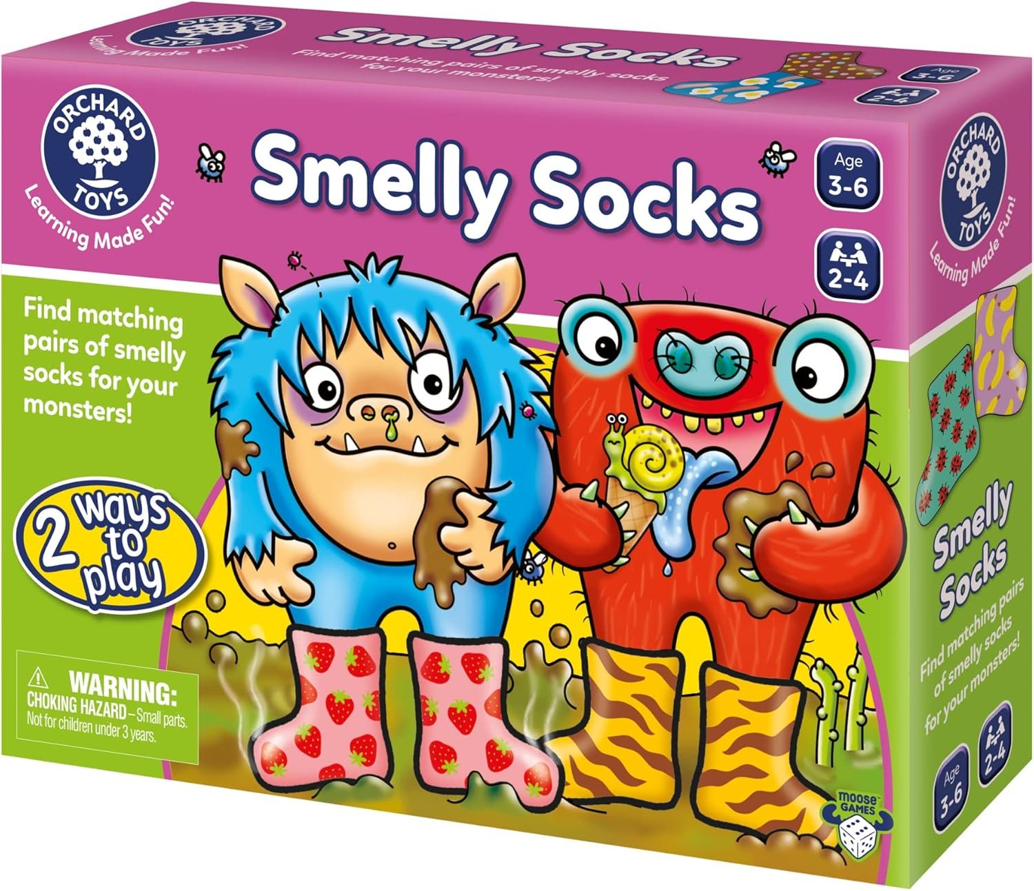 ORCHARD TOYS Moose Smelly Socks Game. Find Matching Pairs of Socks for Your Monsters! for Ages 3-6 and 2-4 Players
