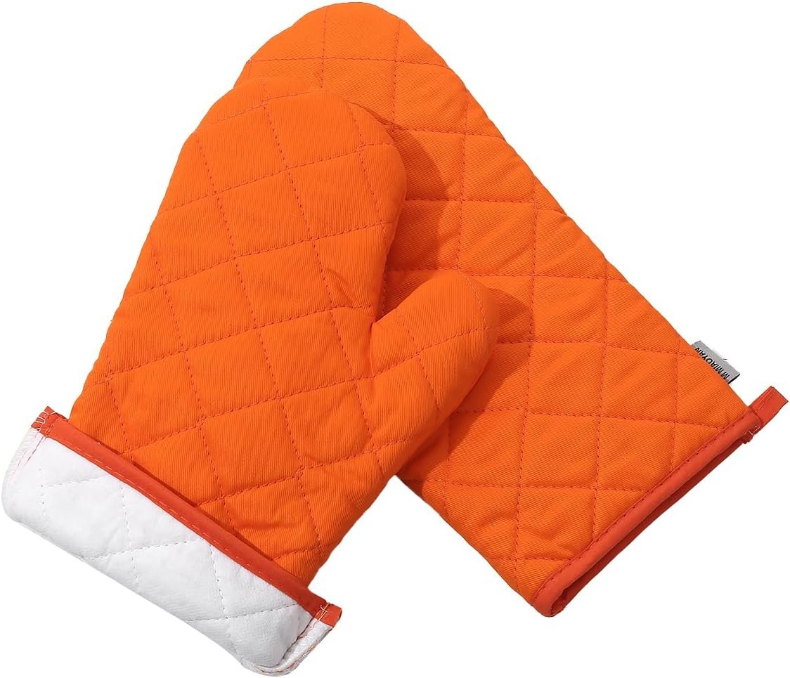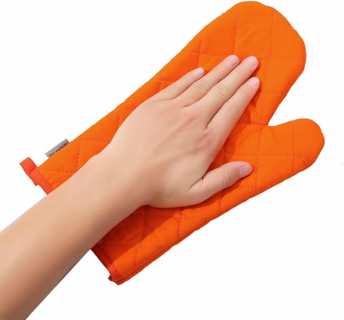 Oven Mitts and Pot Holders 4 pcs Set,High Heat Resistant 500 Degree Extra Thicken Long Kitchen Cotton Oven Glove for Cooking (12 Inch,Orange)…