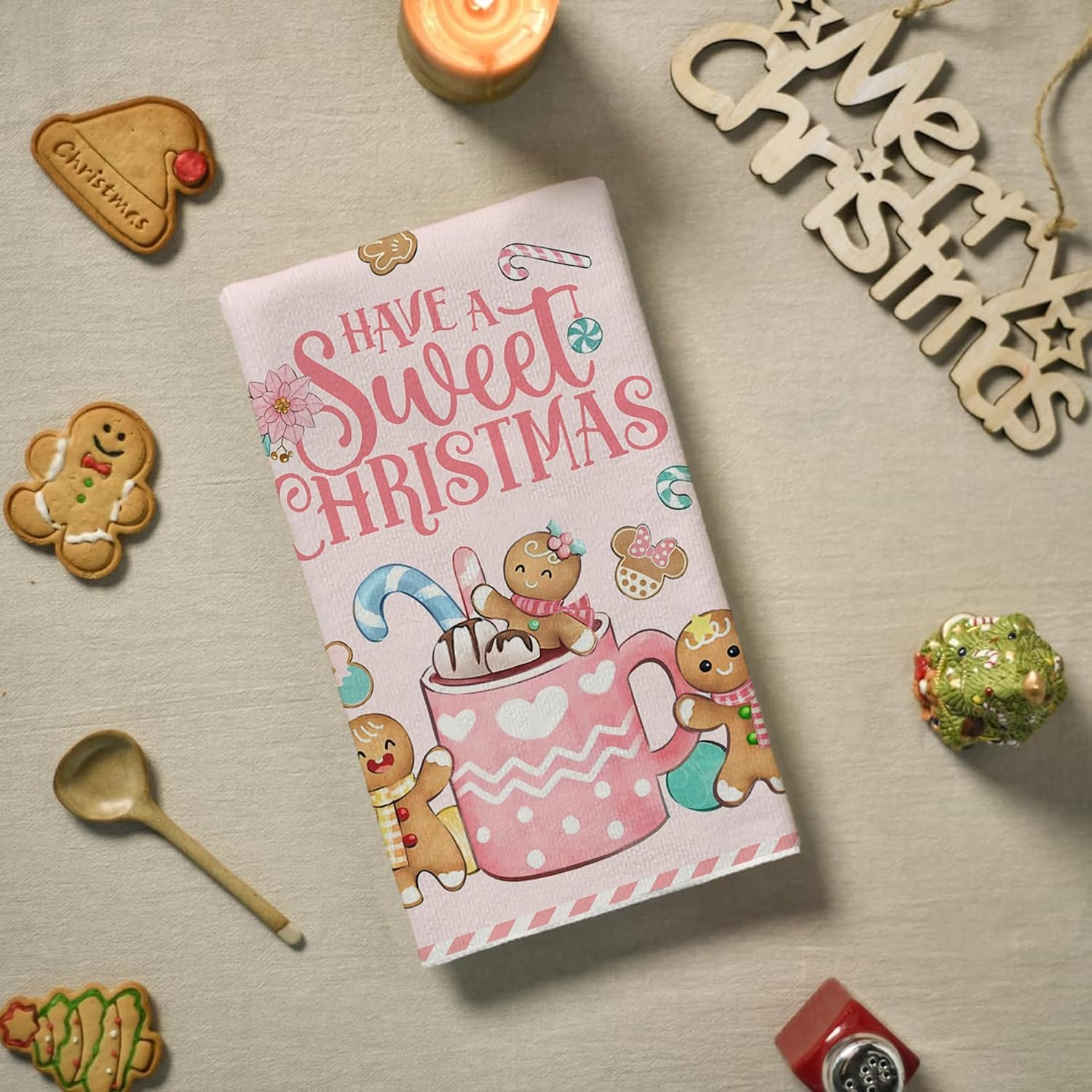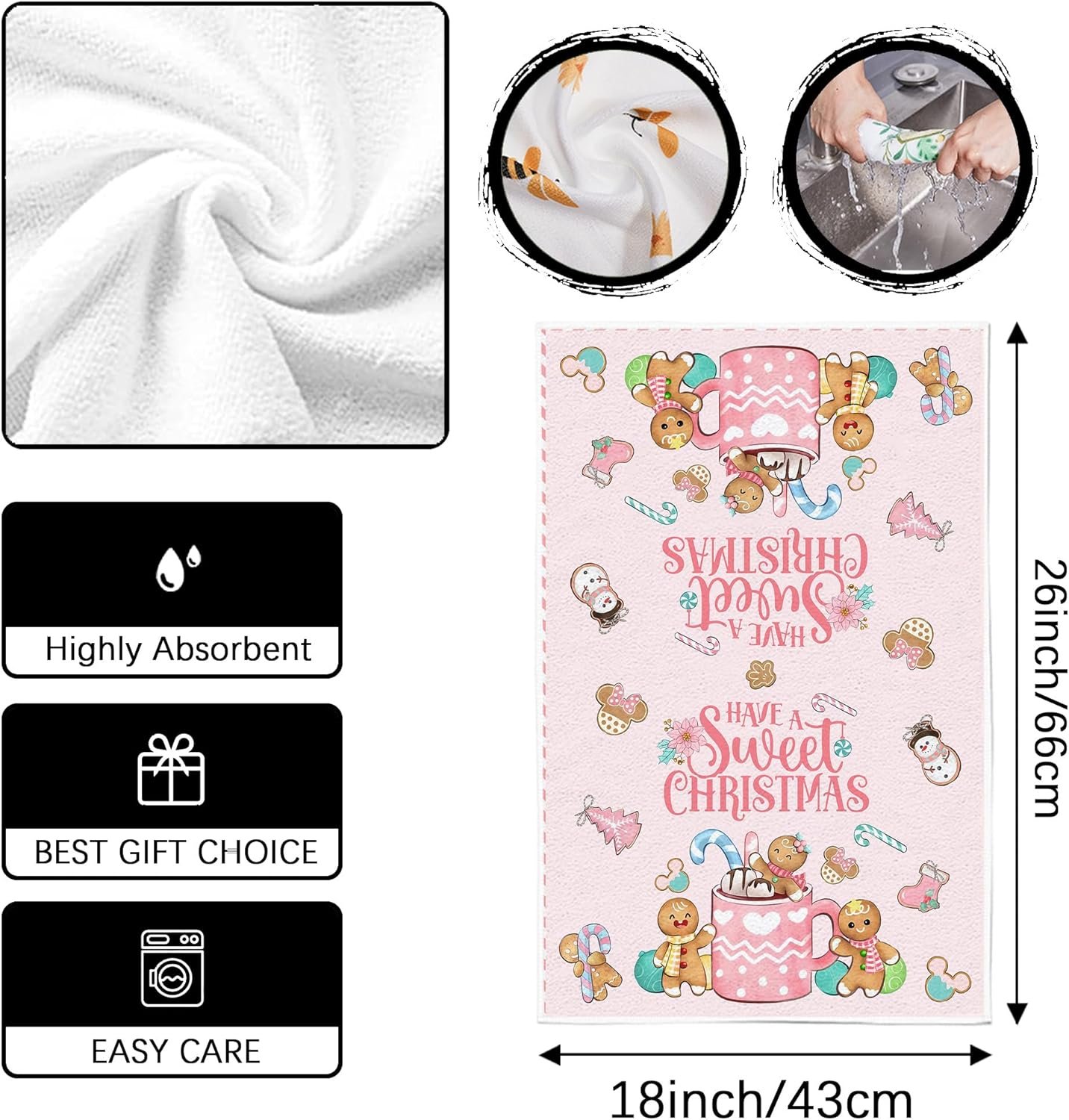 Pink Gingerbread Christmas Kitchen Towels Gingerbread Mouse Christmas Dish Towels Candy Cane Gingerbread Man New Year Xmas Kitchen Decor Christmas Decorations for Home Party