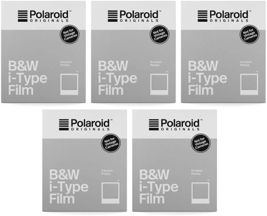BUNDLE INCLUDES: 5 packs of Polaroid Originals Standard B&W instant Films for i-Type Cameras, to give a total of 40 exposures