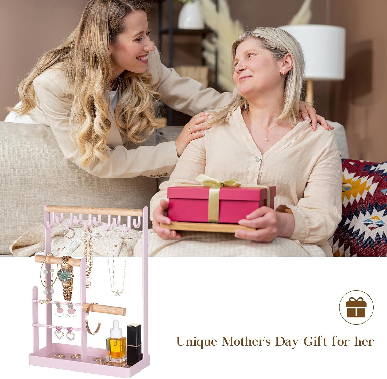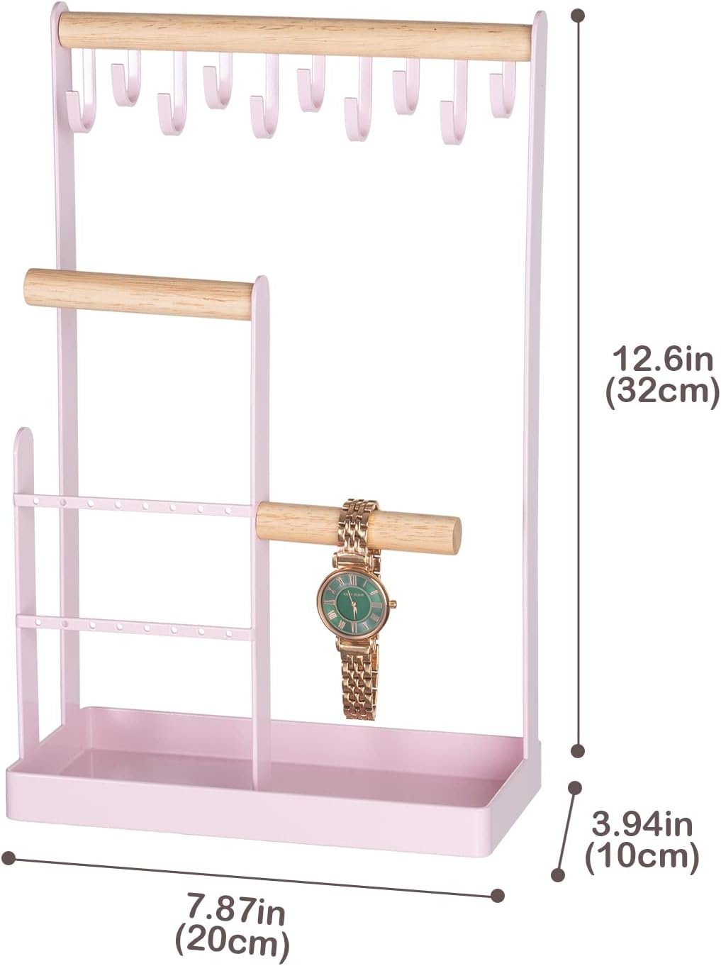 ProCase Jewelry Organizer Jewelry Stand Jewelry Holder Organizer, 4-Tier Necklace Organizer with Ring Tray, Small Cute Aesthetic Jewelry Tower Storage Rack Tree for Bracelets Earrings Rings -Pink