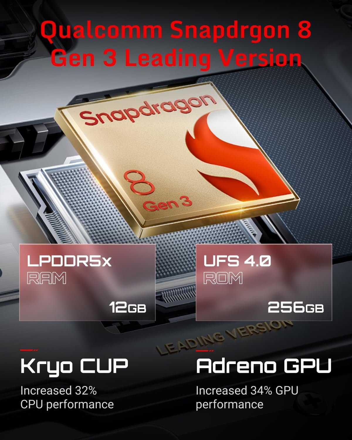 The REDMAGIC 9S Pro gaming smartphone has the latest Qualcomm Snapdragon 8 Gen 3 Leading Version (UFS 4.0 + LPDDR5X).