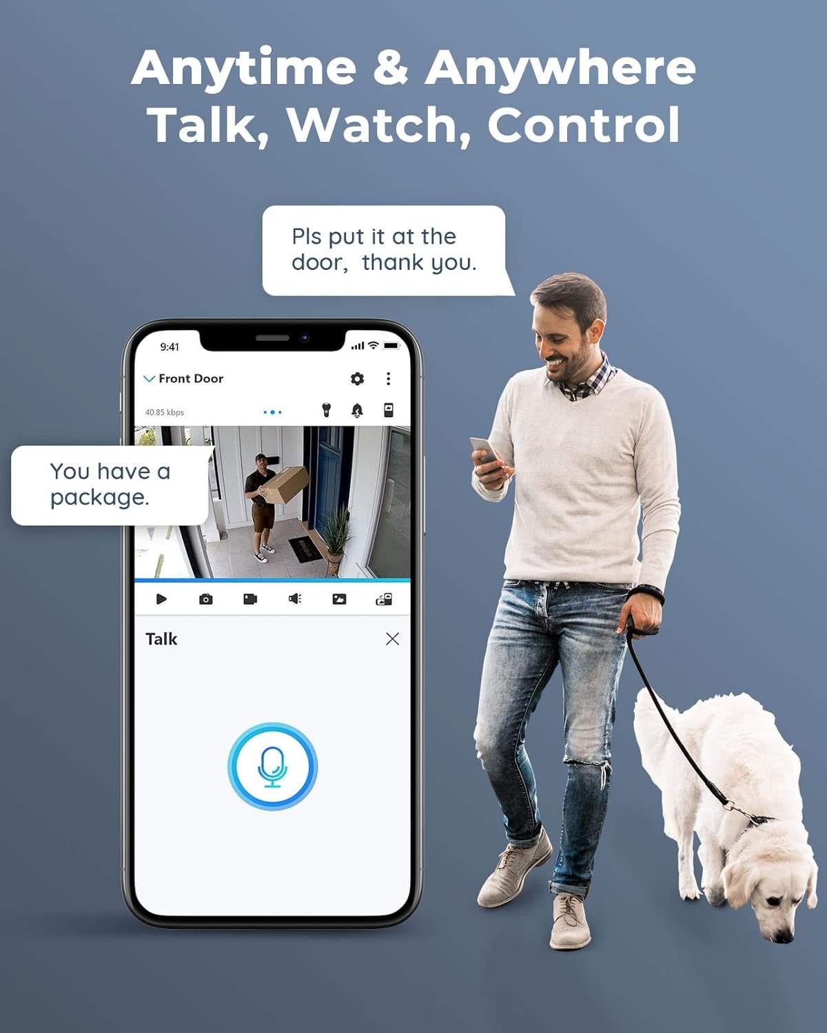TWO-WAY TALK — The 12MP camera with audio in this home security system has a speaker built-in for two-way communication with your family as well as threat deterrence. Simply press a button on Reolink App or Client to talk.