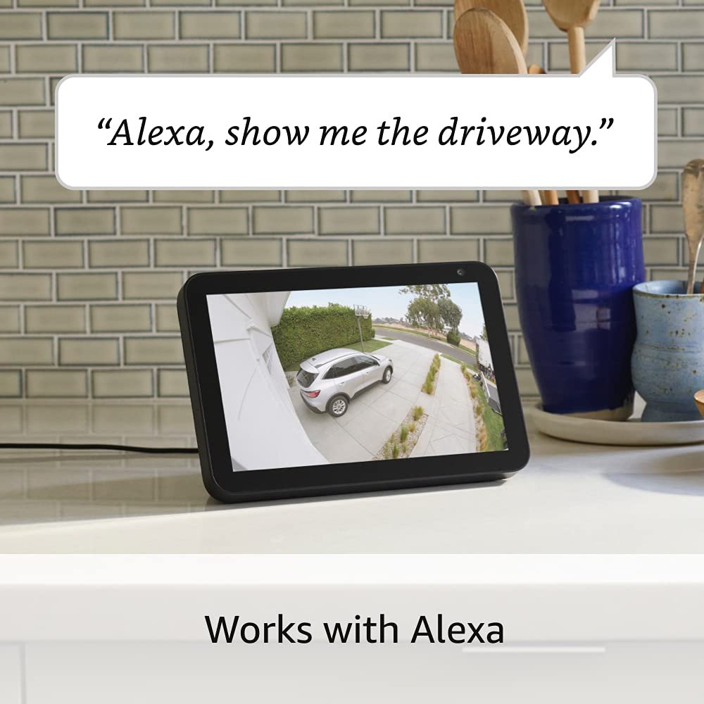 For added peace of mind, pair with Alexa to help you keep an eye on your home. Connect with Alexa to hear motion alerts on your compatible Echo device or see a Live View with an Echo Show, Fire TV, or Fire Tablet. Talk to visitors by saying, “Alexa, talk to the front door.”