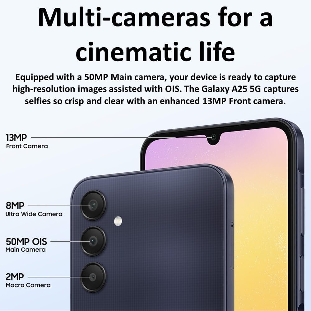 Samsung Galaxy A25 5G A256E 128GB Dual-SIM GSM Unlocked Android Smartphone (Latin Variant/US Compatible LTE) – Blue Black