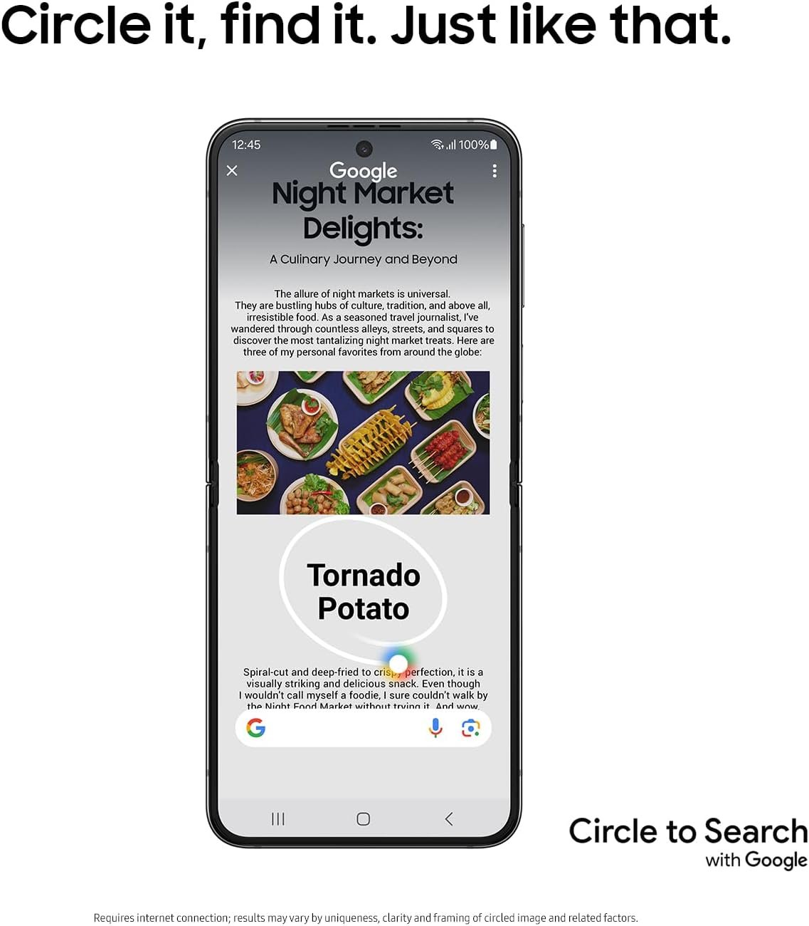 ¹Requires internet connection; results may vary by uniqueness, clarity and framing of circled image and related factors. ²Samsung account login required. Calls must be made using the native Samsung dialer. ³For text in Samsung Notes only (200 –4,000 characters); requires Samsung account login and internet connection. ⁴Requires Samsung account login and internet connection.