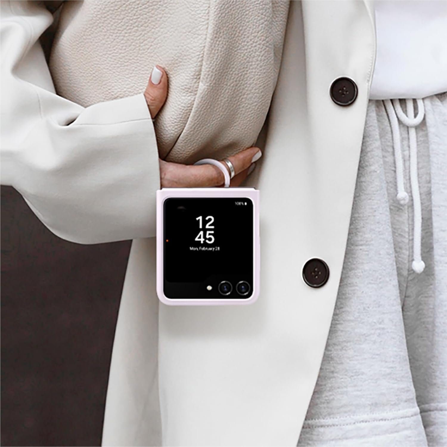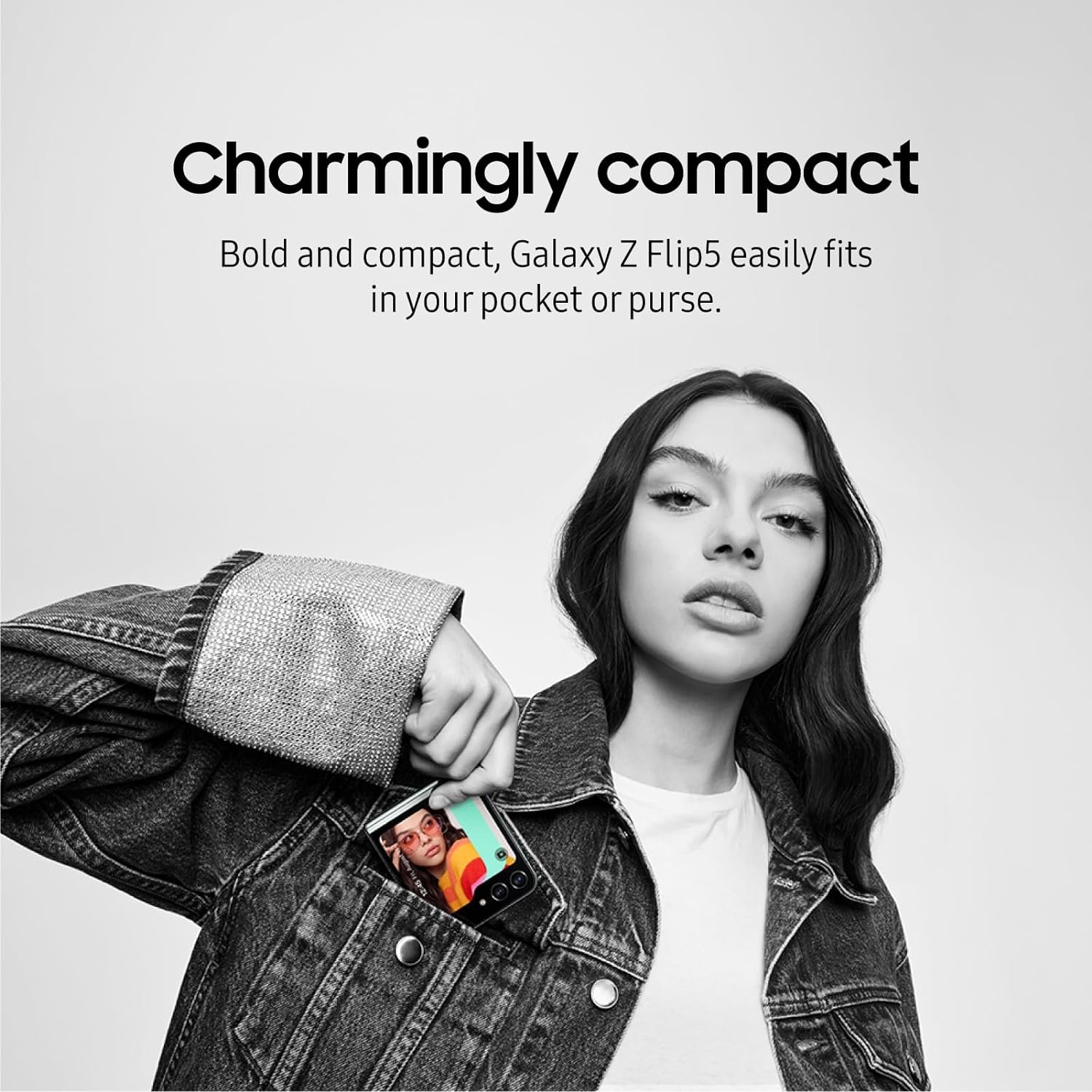 PURSE, POCKET & PALM PERFECT: Flex the pocket-perfect and powerful Galaxy Z Flip5; With its innovative design, this compact phone is packed with a big personality