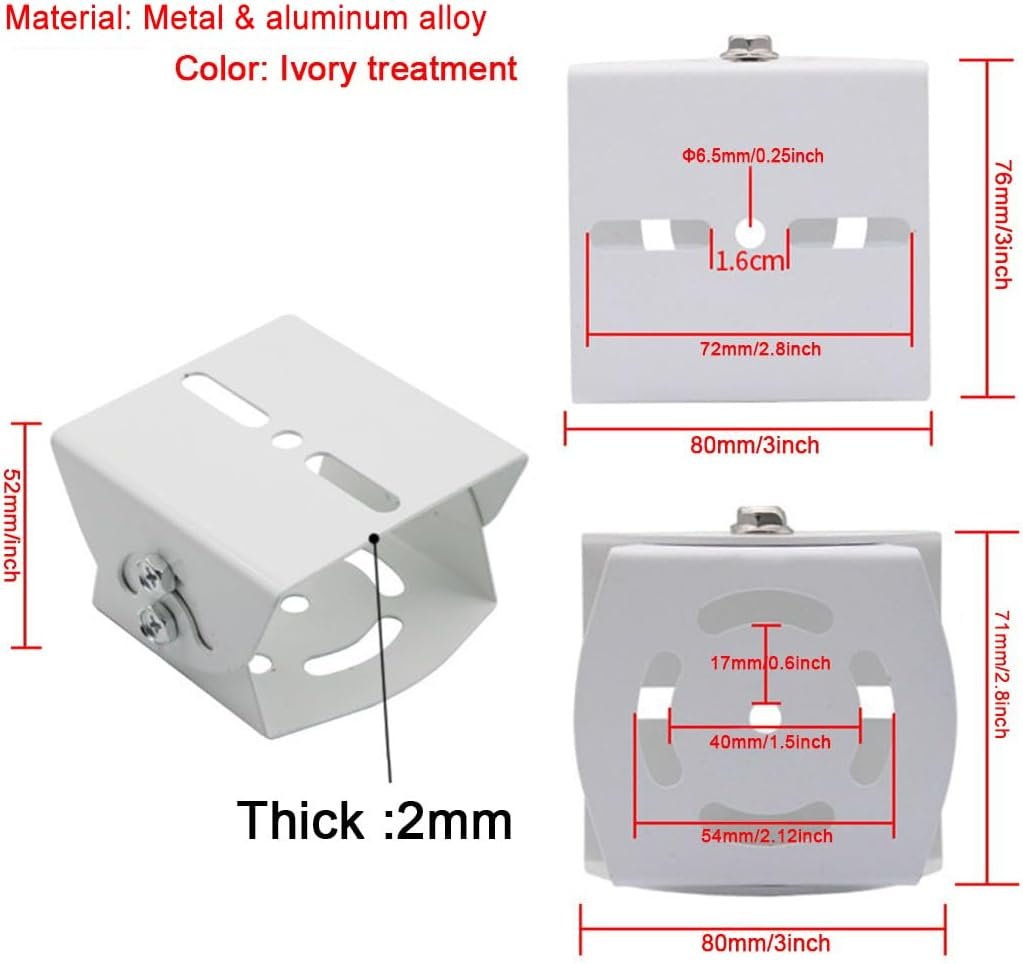 Easy to install and adjust the direction of the camera Standard size is compatible with most surveillance camera. It is suitable for indoor, outdoor, top, wall and ceiling mounting.