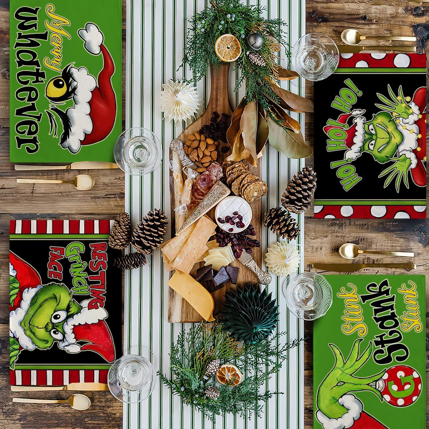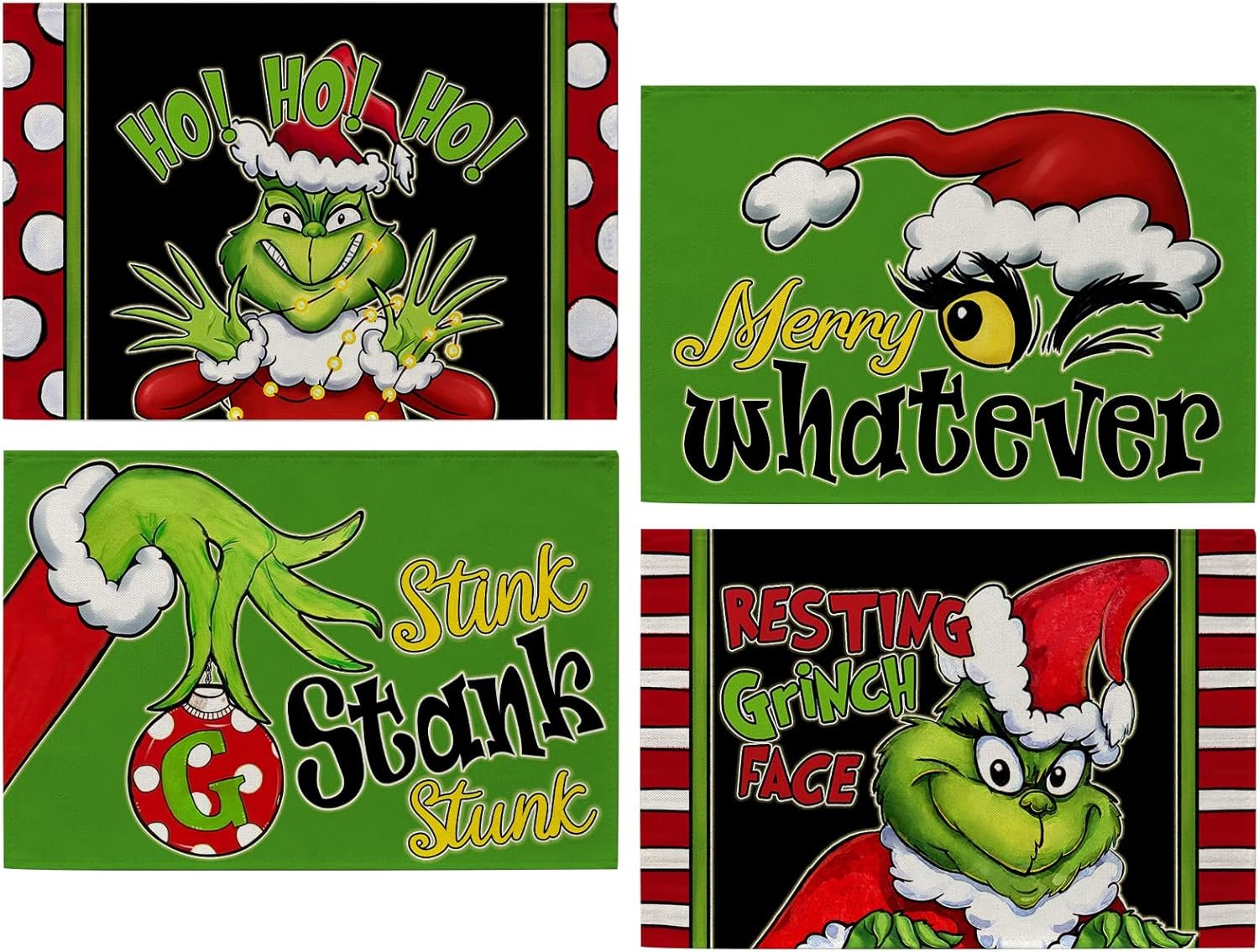 Seliem Christmas Merry Whatever Placemats Set of 4, Xmas Stink Stank Stunk Dining Table Place Mats Home Kitchen Decor, HO Resting Face Winter Holiday Decoration 12 x 18 Inch