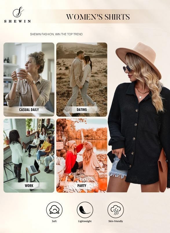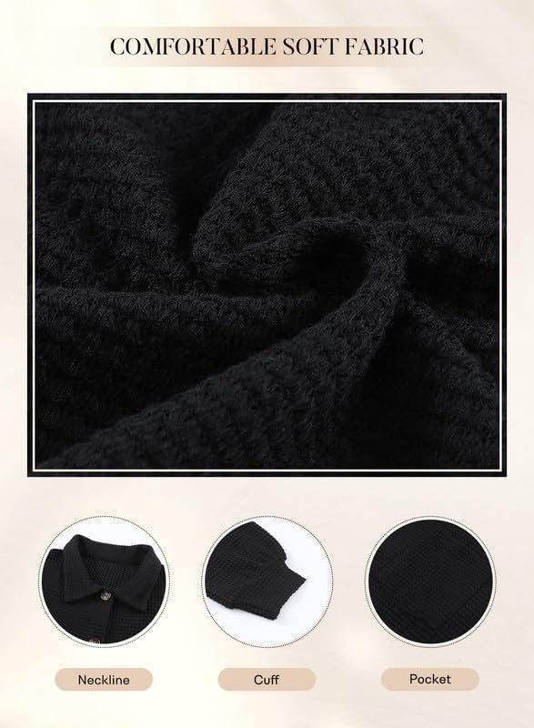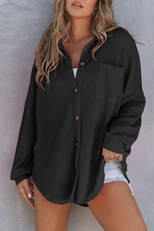 SHEWIN Women’s Waffle Knit Button Down Shirts Casual Long Sleeve Shacket Jacket Boyfriend Tops Blouses Loose Fit