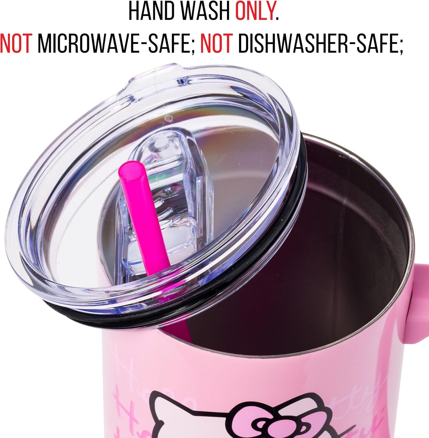 Silver Buffalo Sanrio Hello Kitty Waving Stainless Steel Tumbler with Handle and Straw, Fits in Standard Cup Holder, 40 Ounces