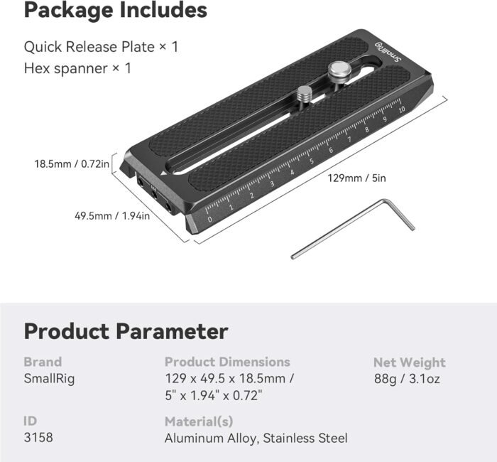 SmallRig 5″ Quick Release Plate for Manfrotto-Type Compatible with DJI RS 4 / RS 4 Pro/RS 2 / RSC 2 / Ronin-S/RS 3 / RS 3 Pro Gimbal – 3158B