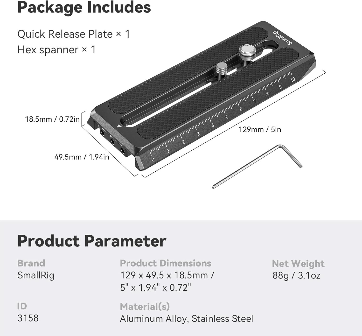 【For Selected Gimbals】SmallRig 5″ Quick Release Plate for Manfrotto-Style 3158 is exclusively ONLY designed for DJI RS 4 / RS 4 Pro / RS 2 / RSC 2 / Ronin-S / RS 3 / RS 3 Pro gimbal.